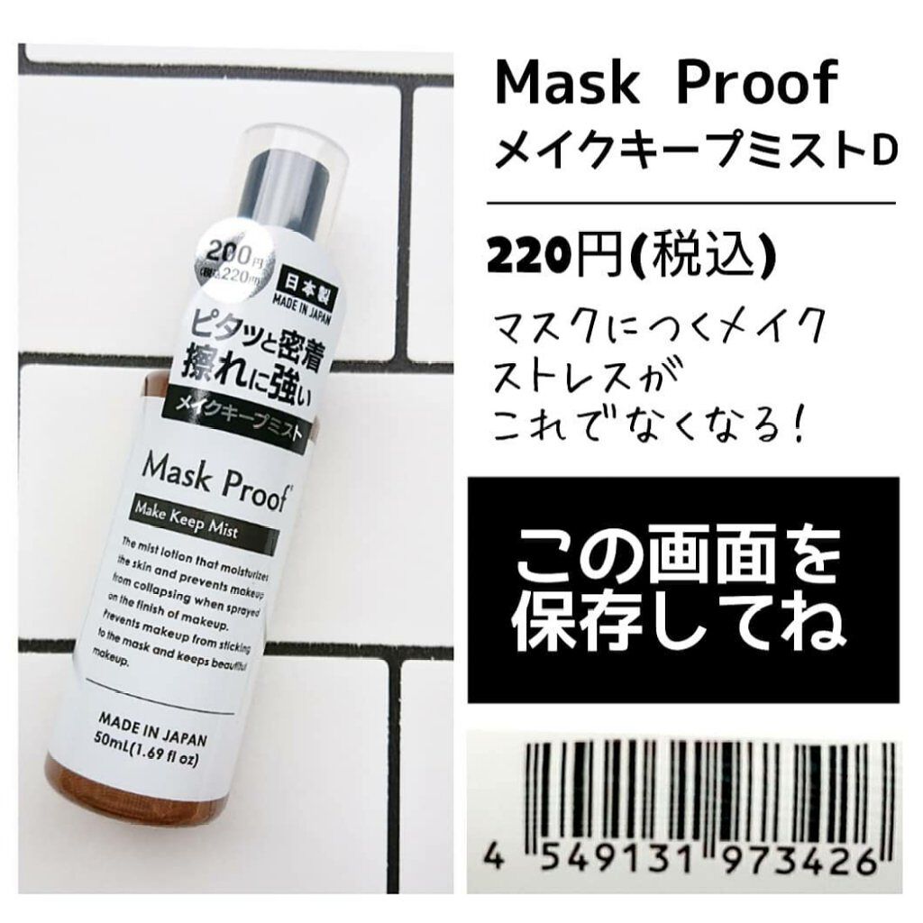 | フィックスミストランキング第5位 | マスクをすると本当に崩れないです……!特に摩擦に対しての崩れにかなり強くなります!!✨ | 詳細を見る | |