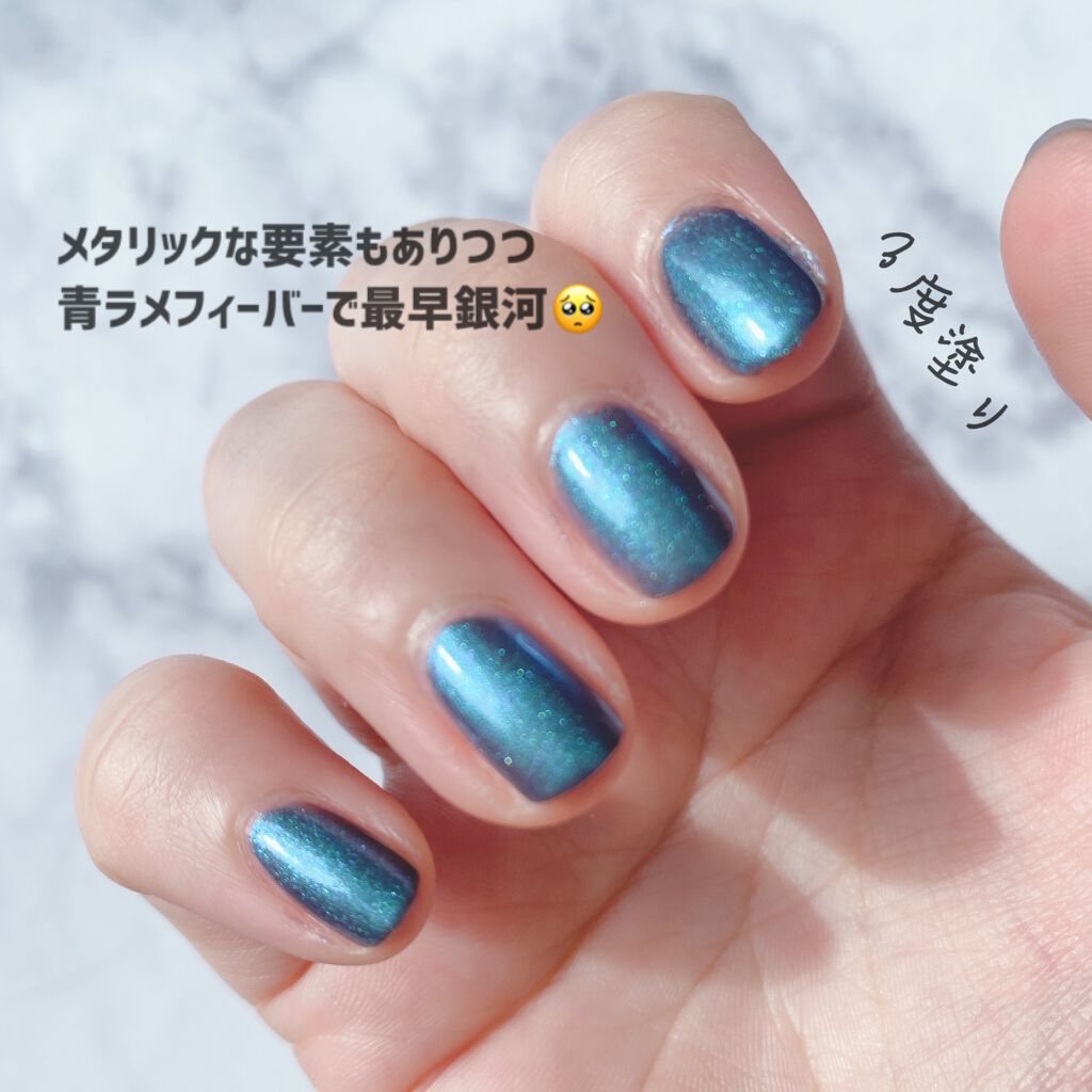 セリアで買える100均ネイルのクオリティ高ッ!深みのあるブルーにギャラクシー感ある偏光ラメが可愛い♡★使ったものACネイルエナメル【049トワイライトスカイ】全体的には深みのあるブルー系。角度によって色が変わったように見えるのが不思議!(画像...