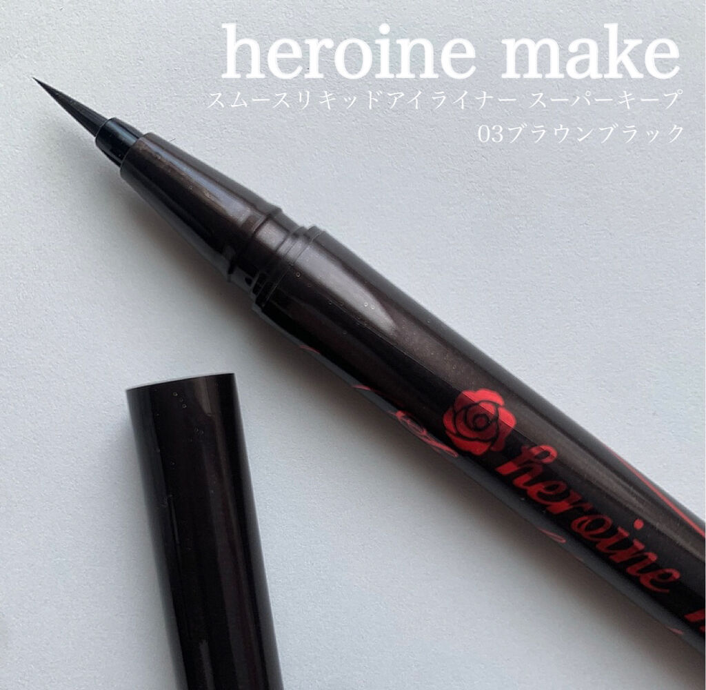 ヒロインメイクスムースリキッドアイライナースーパーキープ02ビターブラウン耐久性の高い処方でウォータープルーフで涙・汗・皮脂に強く美しいラインを長時間キープお湯オフというから買ってみたぁ細筆で描きやすい抜け感があるのでブラウン系、好きまぁまぁ...