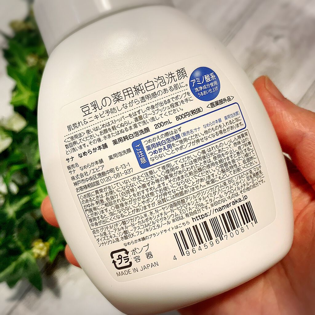 - 豆乳の純白泡洗顔。忙しい朝にも簡単プッシュで、肌荒れ&ニキビ予防しながら透明感のある肌に洗い上げます。 つめかえ用もあるので、お得にご使用いただけます。(つめかえ用を使用する際は、必ず薬用泡洗顔の容器につめかえてください) [販売名:サナ なめらか本舗 薬用泡洗顔]