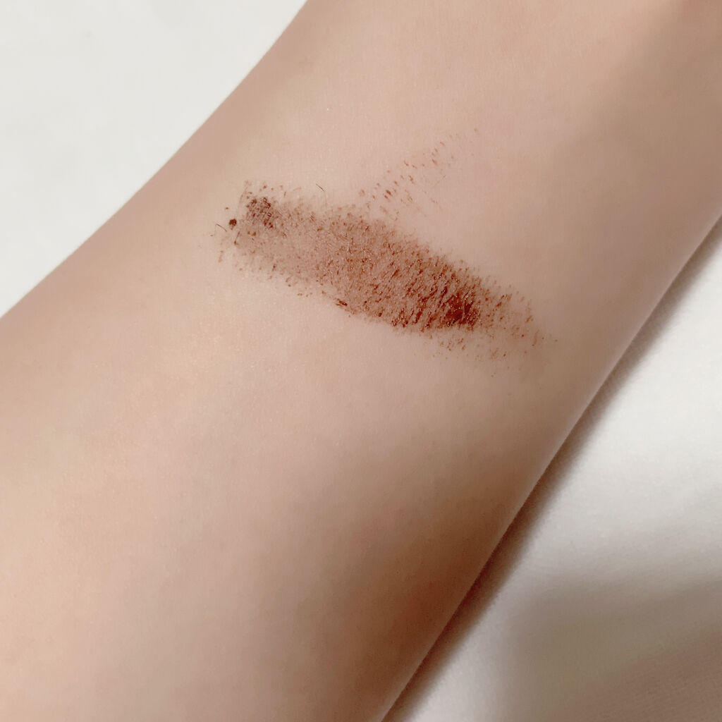 発色も良く、ほんのりツヤ感がたまらなく可愛い💓 色落ちも少なく 時短がを落ちてからティッシュオフすると 色も残ってるしマスクにもつきにくい🙆♀️🤍 マットよりもどちらかというと ほんのりツヤって感じの印象!! 香りは甘い香りで 乾燥する感じもありませんてました✨ 手につけると ガッツリブラウンって感じのカラー💄 お気に入りコスメでした💓