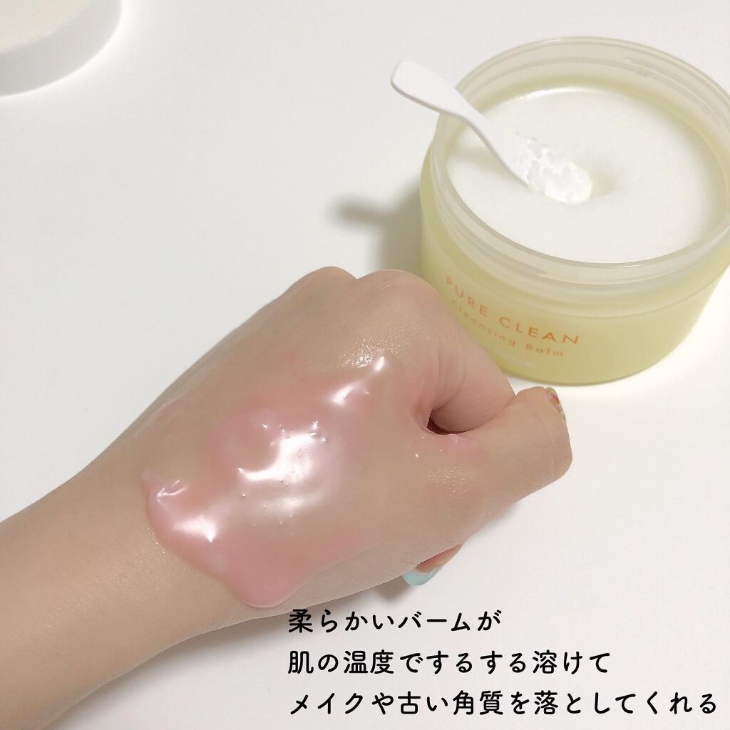 - 肌になじませることで温かくなる特徴をもち、温感効果で心地よく古い角質や角栓をすっきり落として くすんだ肌を明るく導く「ピュアクリーンクレンジングバーム」。 甘くフレッシュな植物性オレンジとエレガントで穏やかなイランイランの香りが上品に肌を包み込み、 オイルマッサージを受けているような心地良い香りをお届けします。 クレンジングバームひとつで「ディープクレンジング+スキンケア+肌キメケア+マッサージ+リフレッシュ」まで叶い、 1日中がんばった肌と心をクレンジングでほぐします。 しっかりメイクも毛穴汚れも、一気にするん。うるおいを与えながら、透明感のある肌へ。