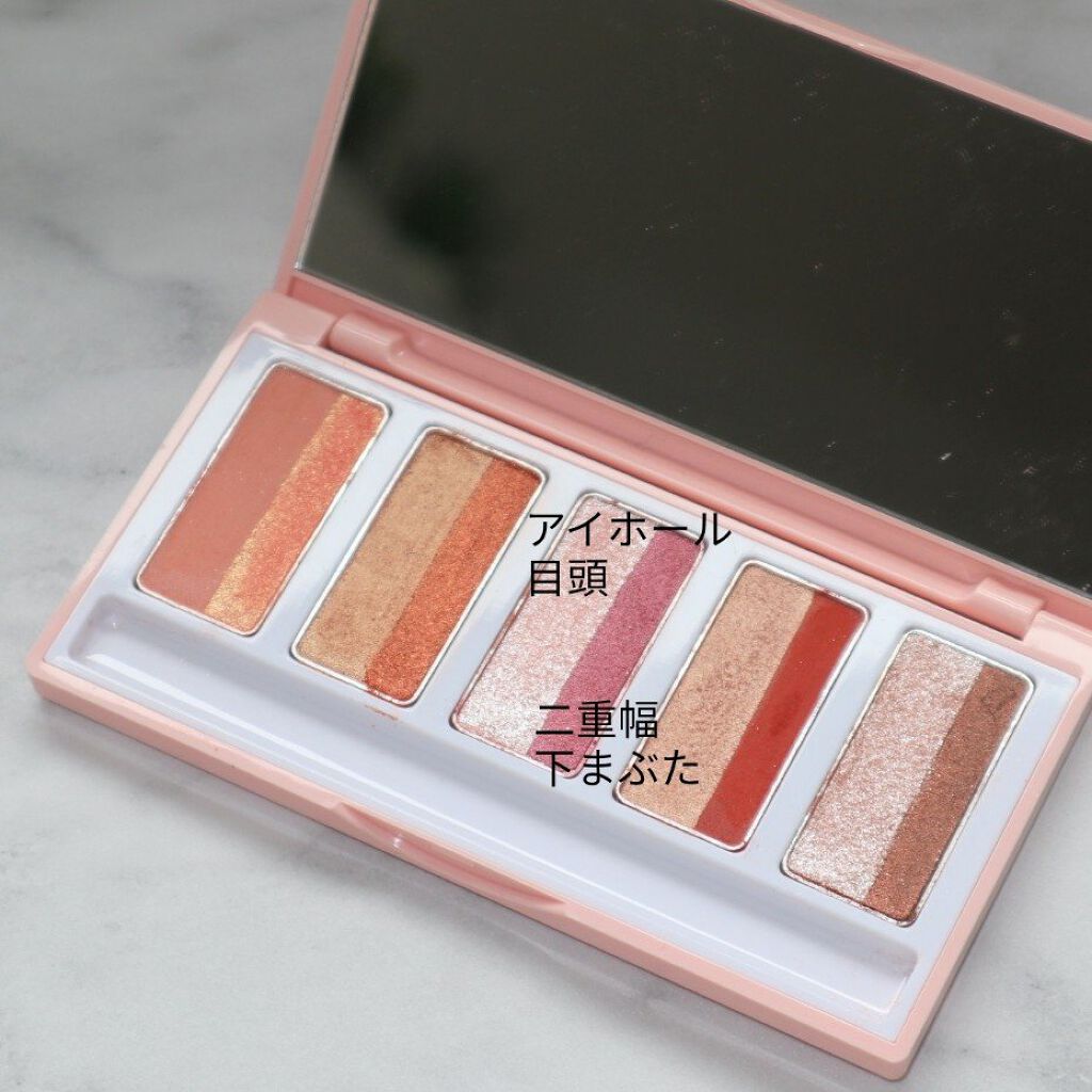 しっとりしているので粉飛びを気にせずメイクできます! 右下のピンクを使いたい気分だったので 上まぶたの目じりにポイントで使いました💓 パッと見は使いにくそうな色ですが ブラシに少しずつ取っていけば自然な仕上がりになります✨