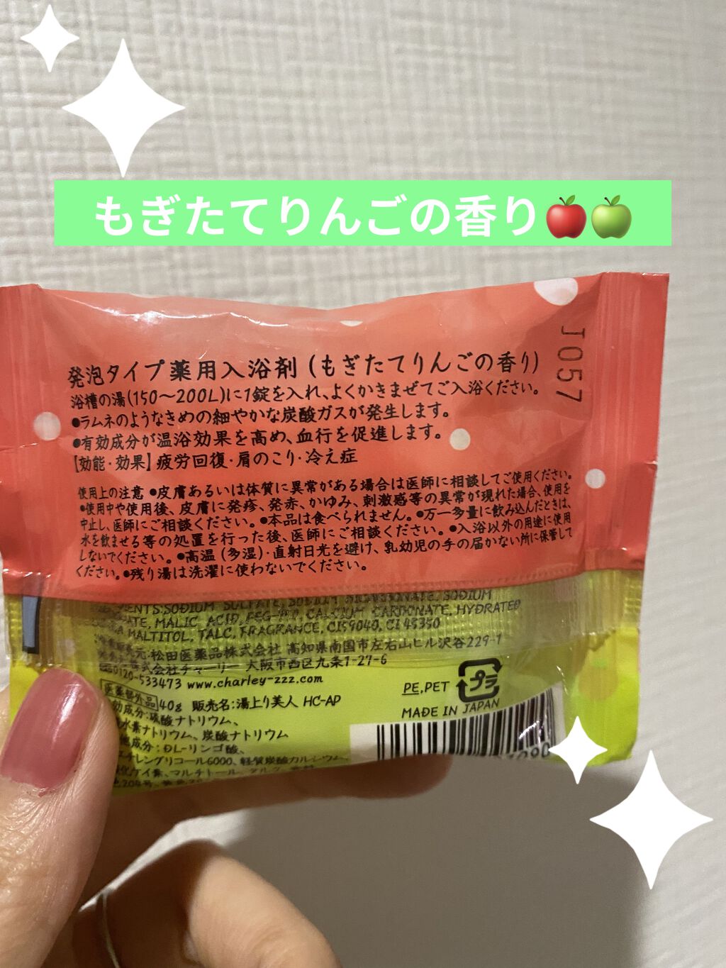 ラムネの薬用入浴剤🛁charleyソムリエバスタブレットラムネ薬用入浴剤〜しぼりたてユズの香り〜発砲タイプの入浴剤です。150〜200Lの浴槽にこの入浴剤1錠を入れ、よくかき混ぜます。袋を開けるとフワーーとゆずの香りが浴槽中に広がりました。ラ...