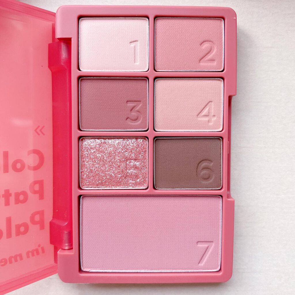 🎀アイムミミ カラーパターンパレット🎀(001コーラルパターン)普段はベージュやピンク系メイクだけどコーラル系も欲しいなって思って購入したこちらをご紹介。粉質柔らかくて、発色はパレット見たまんまの発色!5色の高粘着マットシャドウ、シアーグリッ...