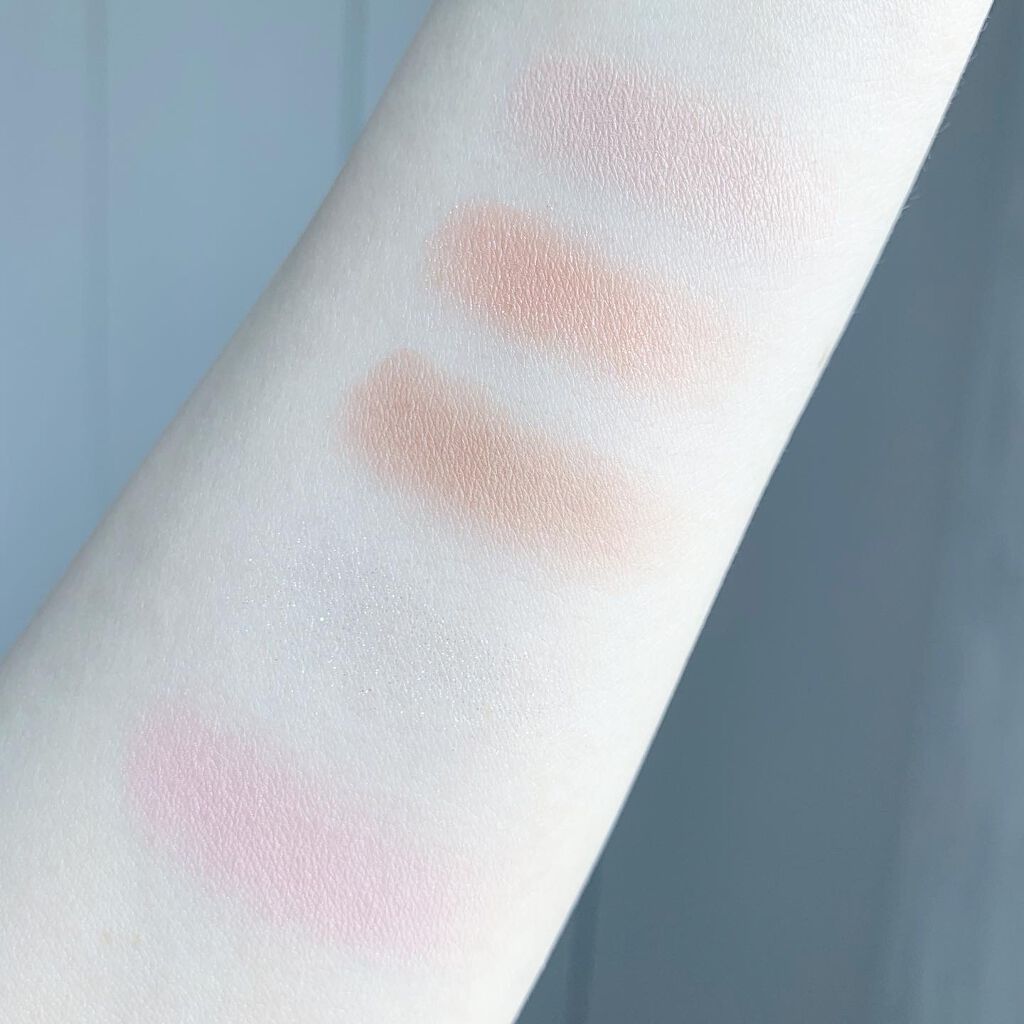 - <001 スウィートピンク> タルク、マイカ、グンジョウ、トリ(カプリル酸/カプリン酸)グリセリル、シリカ、窒化ホウ素、ステアロイルオキシステアリン酸オクチルドデシル、メチルプロパンジオール、ミリスチン酸Mg、マンガンバイオレット、ジメチコン、ミネラルオイル、プロパンジオール、赤酸化鉄、ヒドロキシプロピルビスパルミタミドMEA、ステアリン酸ジメチコノール、黄酸化鉄、ステアリン酸Mg、黒酸化鉄、トリエトキシカプリリルシラン、酸化チタン、メチコン、水 <002 ハローピーチ> マイカ、タルク、ホウケイ酸(Ca/Al)、酸化チタン、シリカ、ジエチルヘキサン酸ネオペンチルグリコール、フェニルトリメチコン、赤酸化鉄、グンジョウ、リンゴ酸ジイソステアリル、ヘキサ(ヒドロキシステアリン酸/ステアリン酸/ロジン酸)ジペンタエリスリチル、ネオペンタン酸イソステアリル、ステアロイルオキシステアリン酸オクチルドデシル、ミリスチン酸Mg、マンガンバイオレット、メチルプロパンジオール、ジメチコン、マカデミア種子油、ポリブテン、ステアリン酸Mg、プロパンジオール、トリエトキシカプリリルシラン、酸化スズ、メチコン、水 <003 ベイクド ジンジャー> タルク、マイカ、グンジョウ、シリカ、マンガンバイオレット、酸化チタン、トリ(カプリル酸/カプリン酸)グリセリル、赤酸化鉄、窒化ホウ素、黄酸化鉄、黒酸化鉄、ミリスチン酸Mg、ミネラルオイル、ステアロイルオキシステアリン酸オクチルドデシル、メチルプロパンジオール、ジメチコン、プロパンジオール、黄色4号、ヒドロキシプロピルビスパルミタミドMEA、ステアリン酸ジメチコノール、ステアリン酸Mg、トリエトキシカプリリルシラン、水 <004 グラムローズ> ホウケイ酸(Ca/Al)、タルク、ホウケイ酸(Ca/チタン)、マイカ、ジエチルヘキサン酸ネオペンチルグリコール、酸化チタン、フェニルトリメチコン、シリカ、ミリスチン酸Mg、リンゴ酸ジイソステアリル、ヘキサ(ヒドロキシステアリン酸/ステアリン酸/ロジン酸)ジペンタエリスリチル、ネオペンタン酸イソステアリル、ステアロイルオキシステアリン酸オクチルドデシル、グンジョウ、ステアリン酸Mg、メタクリル酸メチルクロスポリマー、メチルプロパンジオール、ポリブテン、プロパンジオール、酸化スズ、ジメチコン、ラウロイルリシン、マンガンバイオレット、赤酸化鉄、トリエトキシカプリリルシラン、黄酸化鉄、メチコン、水
