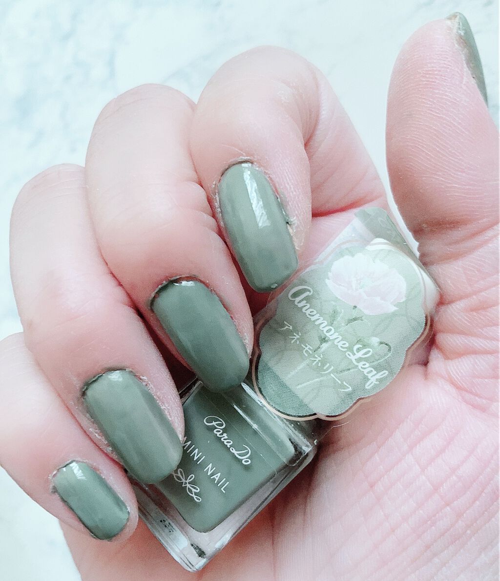 Paradoのネイルを使ってみました✨丁度いい緑で爽やか感がありますね画像は2度塗りした色になります!1度塗りでも綺麗になるので私はリピしています(*^^*)緑が好きな私にとって一番好きな緑でした🎶...