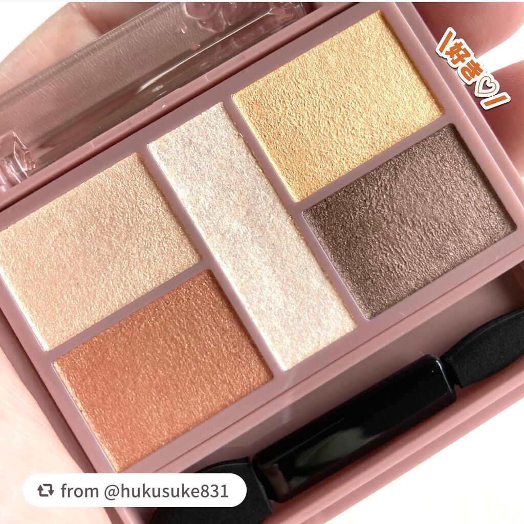 - 1枚のパレットで2つのスタイルが完成! 5色の欲ばりアイシャドウ♥ メインカラーを選んで2つのスタイルが楽しめる! A→B→D でスタイル1 A→C→D でスタイル2 繊細な粉質が、しっとりとまぶたに密着して色落ちを防ぎます。 透明感のあるキラうるトッピングジュエル(繊細ラメ)は、気分によってトッピング!