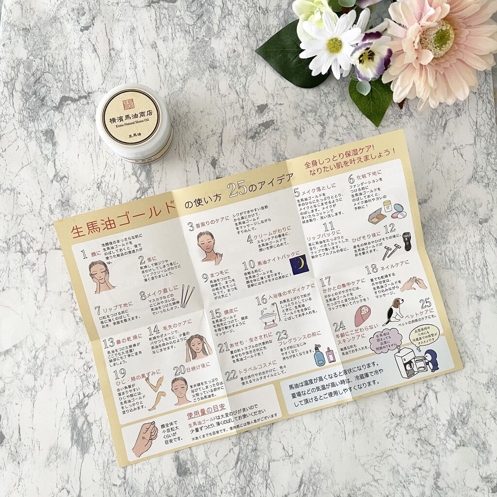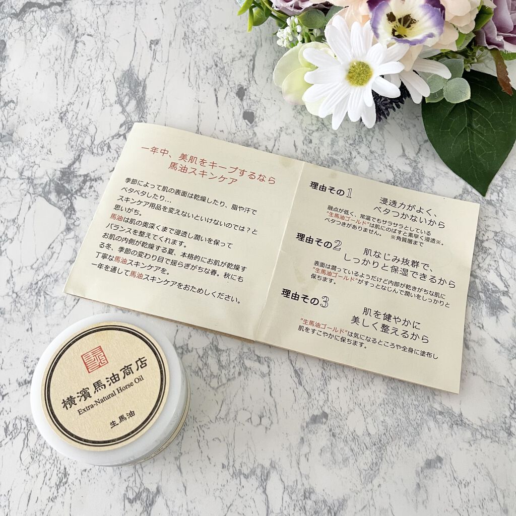 \横濱馬油商店生馬油ゴールド/んん、何これ!?馬油がこんなに高いの!?ってビックリしながらこちら使ってみました😳✨⭐️特徴⭐️馬刺しとして食される「こうね」の上質な部分だけで作っています。(こうねとは一頭の馬からわずかしか取れないたてがみ下の...