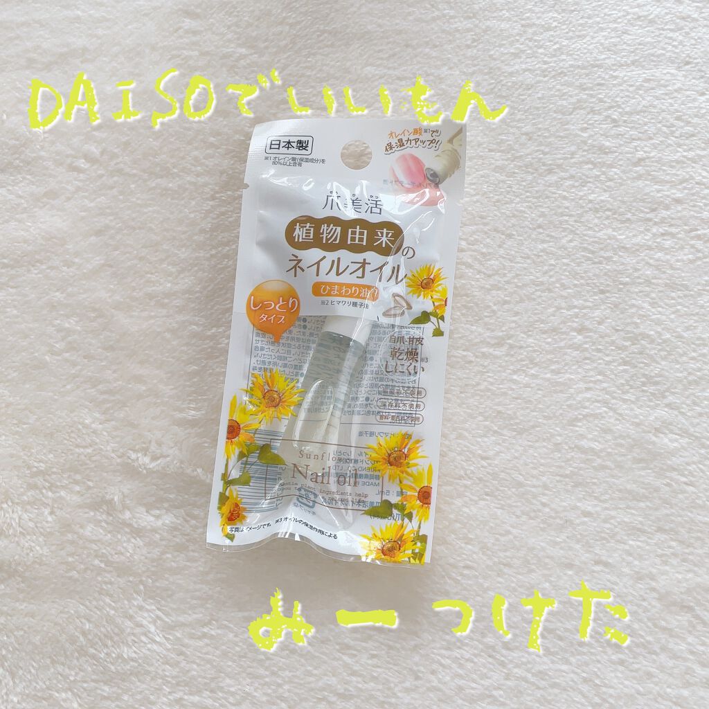 ダイソーで購入しました。爪が乾燥して、潤いが足りなくて悲惨だったけど、これで潤うー♪✼••┈┈••✼••┈┈••✼••┈┈••✼••┈┈••✼【使った商品】爪美活ネイルオイルさっぱり【商品の特徴】爪や指先へ潤い補給【使用感】ベタつかず、塗りや...