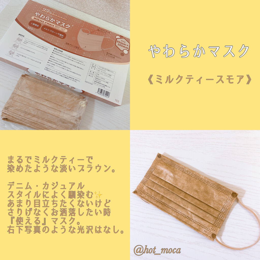 やわらかマスク 51枚入り色は、ミルクティースモアにしました😌着用画像は、最後にあるので是非見てください✨わたしは、楽天市場で700円くらいでした!!他にもたくさんカラーがあって、サイズも普通から小さめサイズまで豊富に揃っていました🙆♀️#...