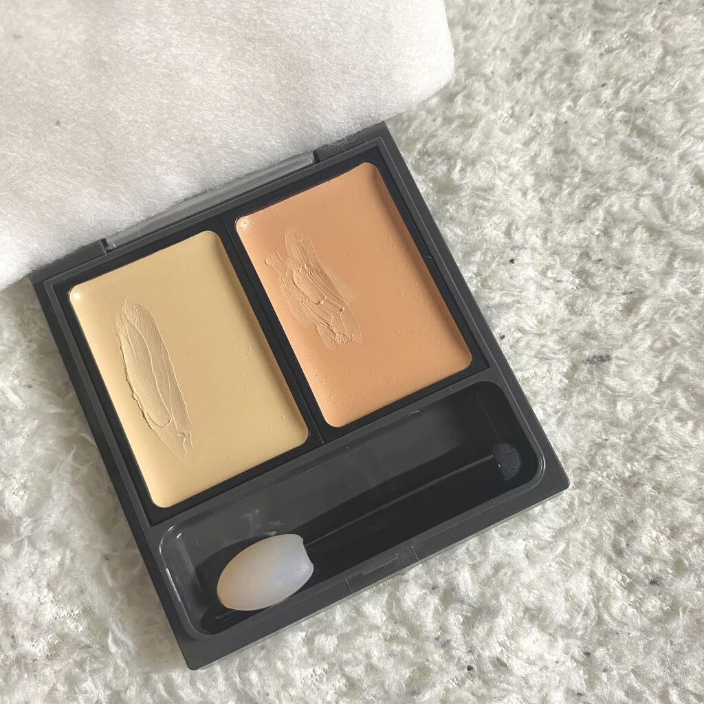 思いのほか暗く、 コンシーラー単体で使おうと思ったら 薄く伸ばしても馴染まず、 浮いてしまいました。 コンシーラーとしても 思っていたよりも ナチュラルな仕上がりだと感じました。 厚塗り感を感じてしまう質感だったので、 濡らしたスポンジで 薄く伸ばす必要がありそうです😓