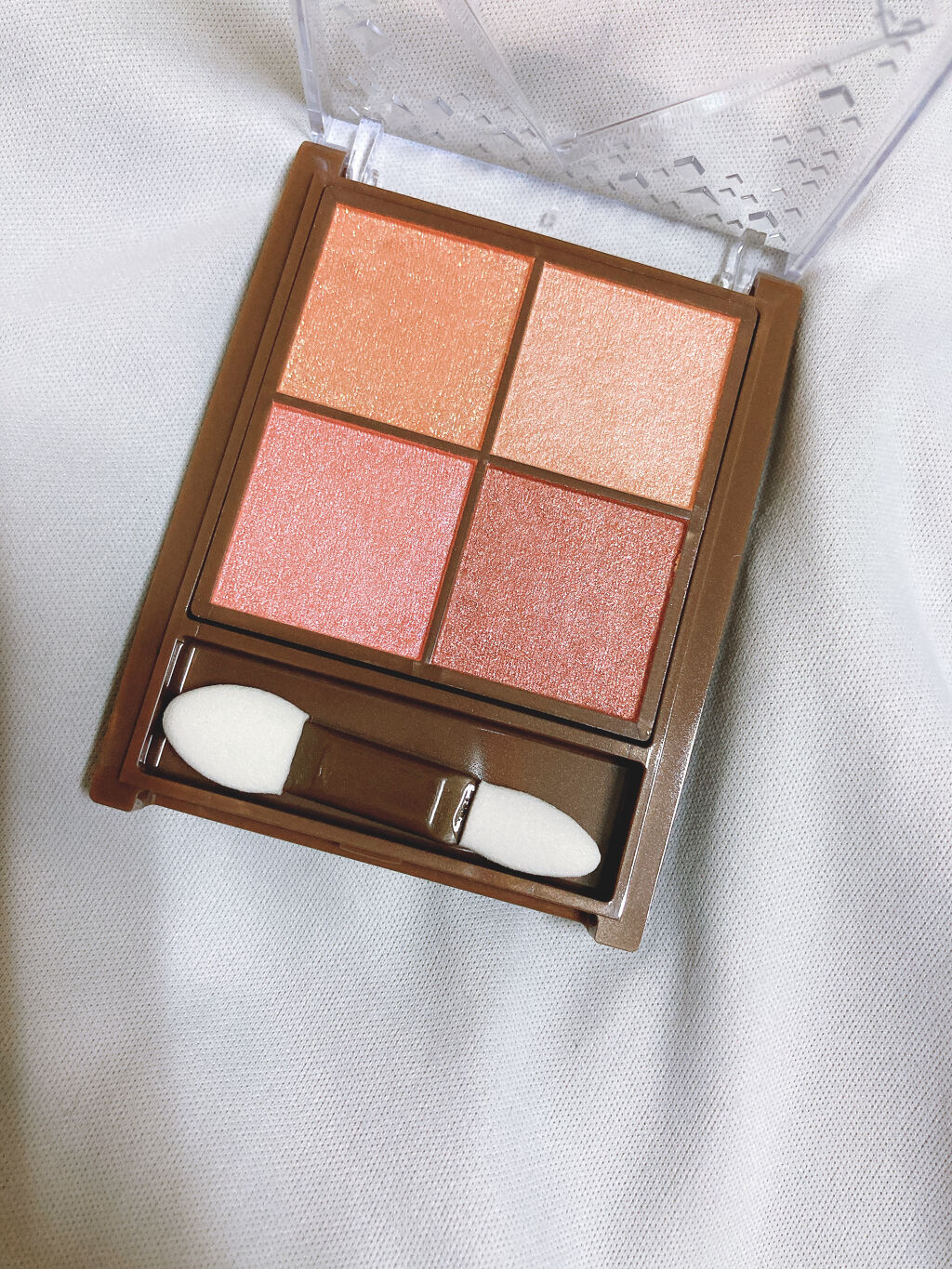 4色でグラデも単色でも可愛いニュアンスカラーのパレット。色を重ねても濁りにくいんだって! ラメが結構惜しみなく入っているので目元がキラキラになる! 色の残り方や発色の仕方はやはりプチプラ感あるかなって感じだけどラメがしっかり夕方までキラキラだったところはとても好感度高い💕