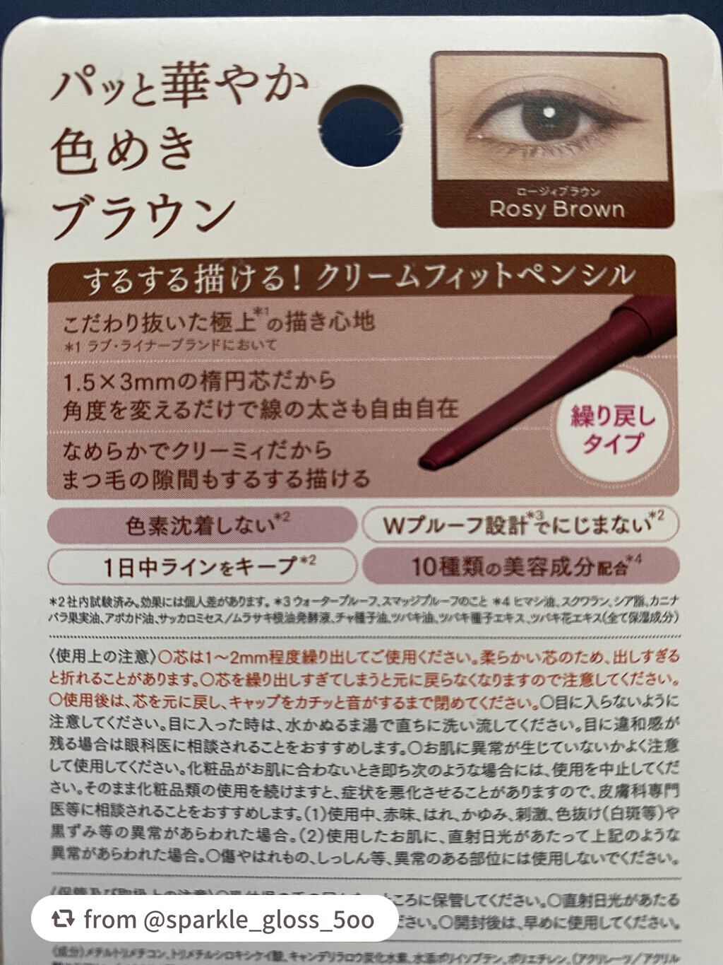 - 肌あたりがまるでクリーム。するする描けて一日中崩れない。※1 ■長さと重さを付けた新形状の繰り戻し可能容器で、手ブレしにくく描きやすさアップ。 ■ドロースムース設計で密着成分と揮発成分が顔料を包み、なめらかな描き心地を実現。 ■汗・皮脂・涙・こすれに強いWプルーフ設計。 ■美容成分※2 を5種類から10種類にアップ。 ※1 社内試験済。効果には個人差があります。 ※2 保湿成分のこと <カラー展開> ■ミディアムブラウン 陰影のある目元を作る黄み寄りのビターなブラウン。洗練された大人の存在感を。 ■アッシュブラウン ほんのり赤み系ブラウンでふわっと自然な抜け感。ほの甘く、柔らかな表情に。 ■ロージィブラウン 華やかで印象的なくすみピンクブラウンで血色感のある目元に。 ■メープルブラウン オレンジ系ブラウンの透け感ラインで、目元にピュアな明るさを。 \2023.9 new/ ■ブラック 目元をくっきり強調する洗練カラー。