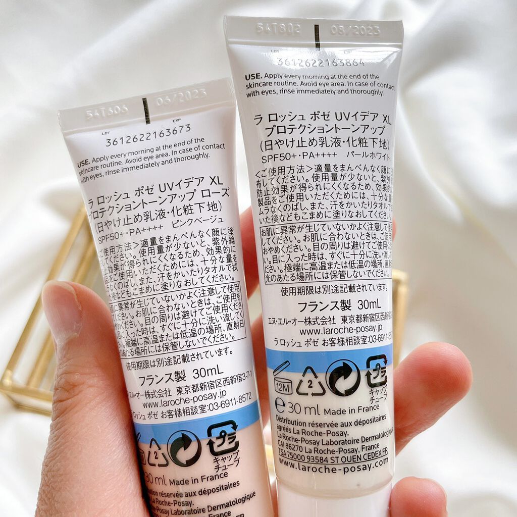 保湿力高めの下地が大好きなのでラロッシュポゼの下地はお気に入りでよく使います✨ かなりトーンアップします🤍自分は肌が黄ぐすみしやすいのでこれくらいトーンアップしてくれた方が時間がたった時にちょうどよくなります✨ 1番のお気に入りはローズです🌹肌から浮かない程よいトーンアップとほんのり血色感がよくなる所が大好きです🥰