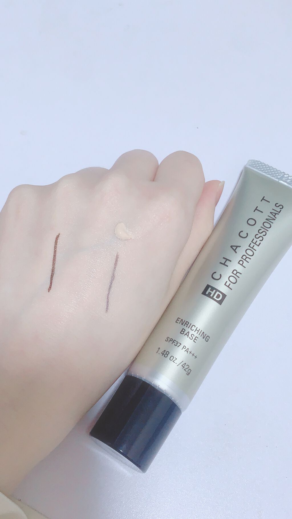 チャコット・コスメティクス様のエンリッチングベース812ナチュラルベージュになります🙌だいぶ前に購入した商品です🙇♀️カバー力が高いとの口コミを見て購入したのですが、購入当初はあまりのカバー力の高さからか絵の具で塗ったような不自然さを感じて...