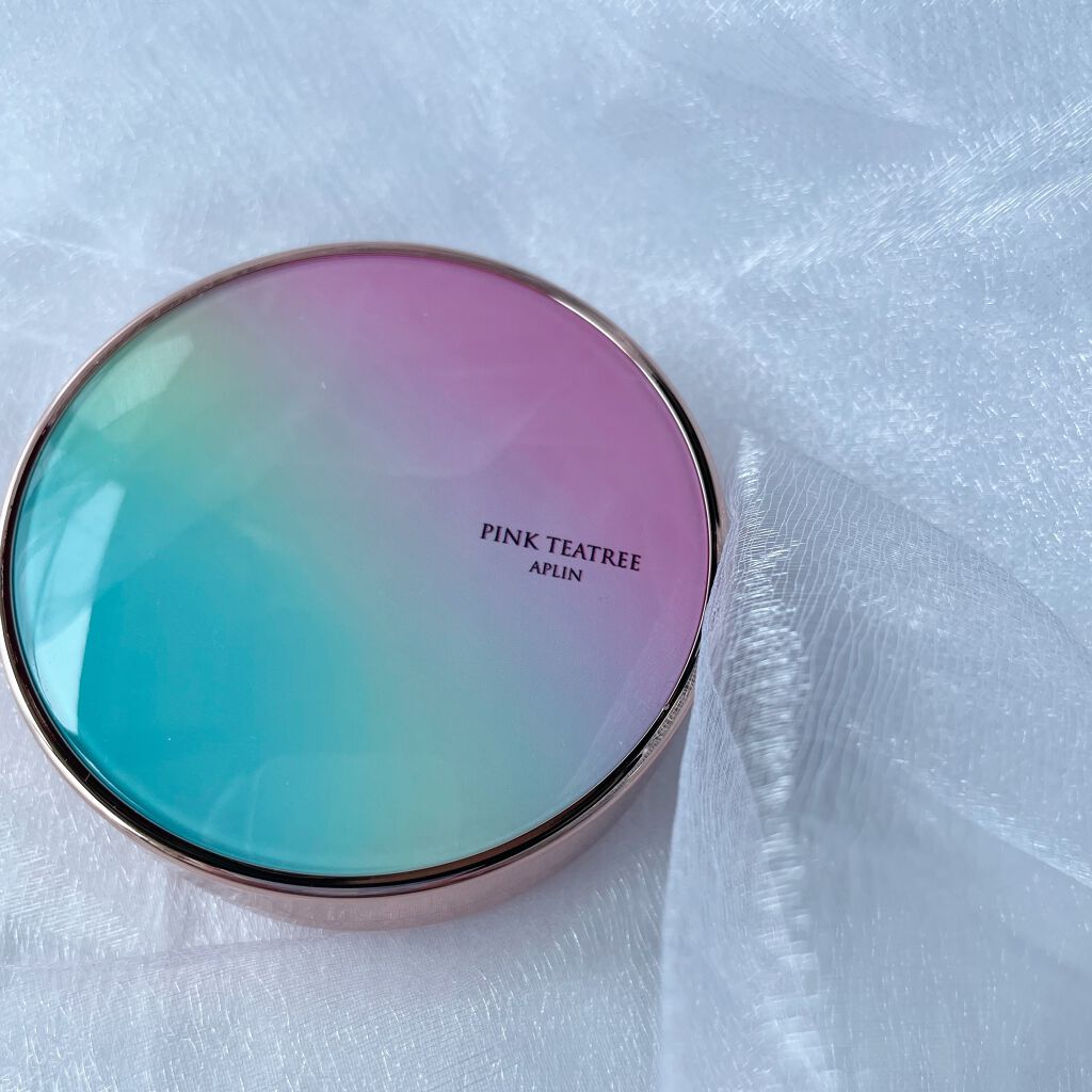 APLIN ピンクティーツリーカバークッション 21号ライトベージュ 2,490円(税込) 少量でよく伸びてハイカバー! 赤みやくすみをしっかりカバ一できるのに、厚塗り感のないなめらかな仕上がり♡ ハイカバーなのにナチュラルなツヤ感とサラッとしつつ、乾燥崩れしにくい仕上がりに感動します!!