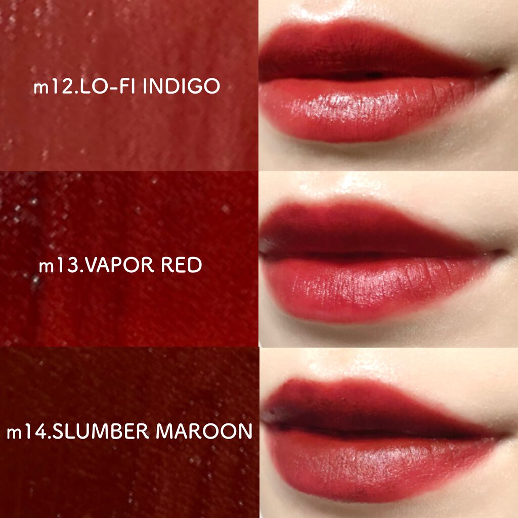 色もちも良くって乾燥しにくいから文句のつけどころがない。 ☑︎201 Miro粘膜ピンクレッド→イエベ春・ブルベ夏 ☑︎203 Markじゅんわり多幸感コーラル→イエベ春 ☑︎204 Haveピュアなベイビーピンク→イエベ春・ブルベ夏(明るめ得意) ☑︎207 Depthレディな透けプラムレッド→ブルベ冬のデイリーブルベ夏の華やか ☑︎208 Poshニュートラルなレッド→ブルベ冬・イエベ春秋(鮮やか得意) ☑︎209 Near落ちついた洒落感オレンジ→イエベ春・イエベ秋(黄み得意) ☑︎213 Jeffブラウンが溶け込んだローズイエベ秋(2ndブルベ夏) ☑︎215 Lennaクリアで可憐な青みピンクブルベ夏冬(明るめ得意) ☑︎216 Winterディープなプラムレッドブルベ冬(青み得意)