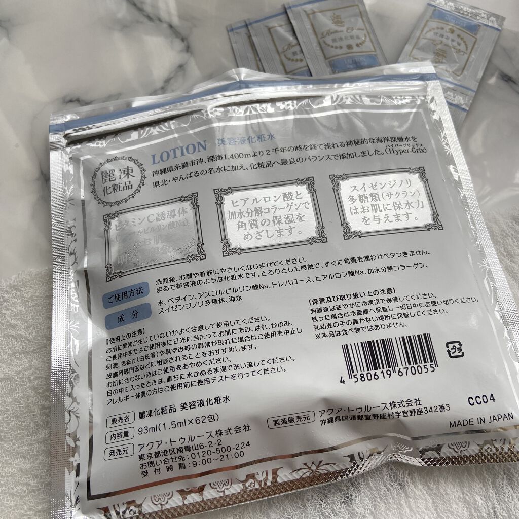 潤い3大成分のヒアルロン酸、コラーゲン、サクラン(スイゼンジノリ多糖体)をはじめ、くすみ・シミ・シワなどにアプローチするビタミンC誘導体を配合した、完全無添加の化粧水。豊富なミネラルを含む沖縄県糸満市沖を流れる沖縄海洋深層水と県北のやんばるの...