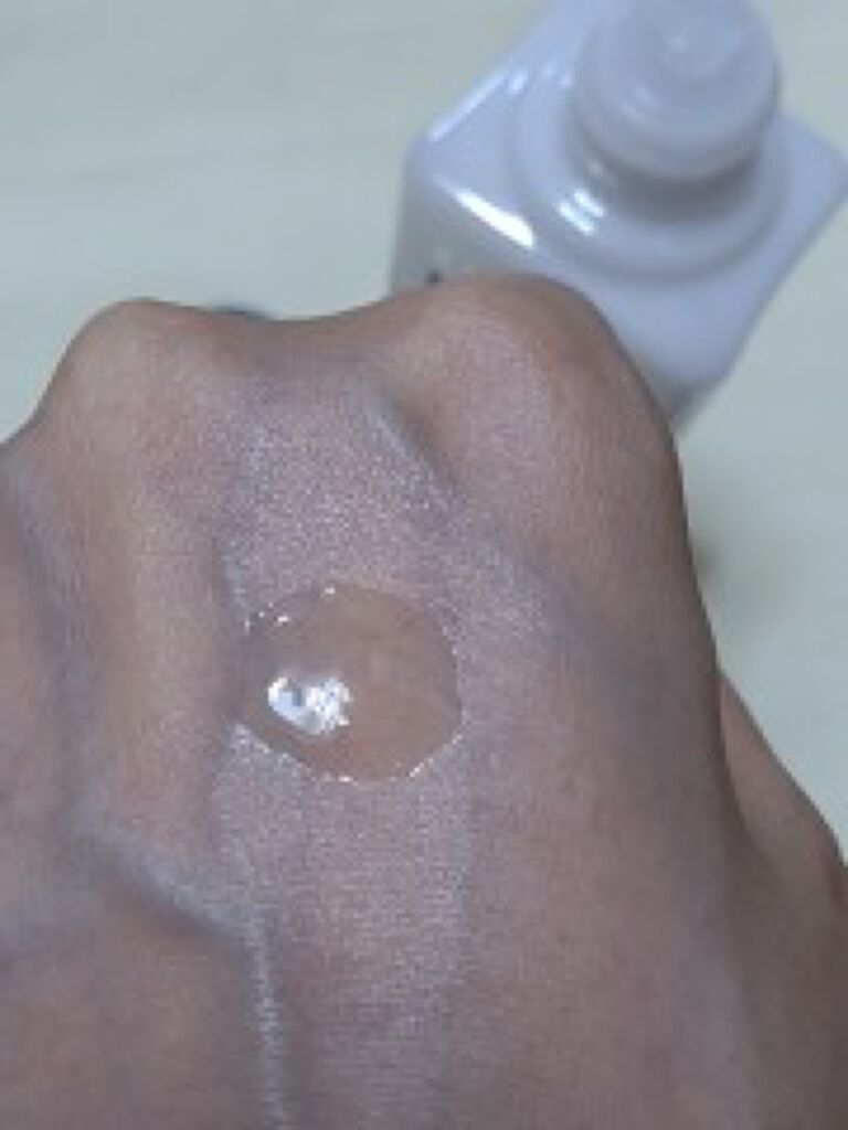半透明のゆるめのジェルテクスチャー。みずみずしいさらっとした伸びがとても気持ちいい。 美容液は成分が濃いイメージだからとろみやぺたっとしたなじみが多い中、ここまでさっぱりしているなんて驚き。水分と油分のバランスを整え、毛穴も引き締まるから過剰...