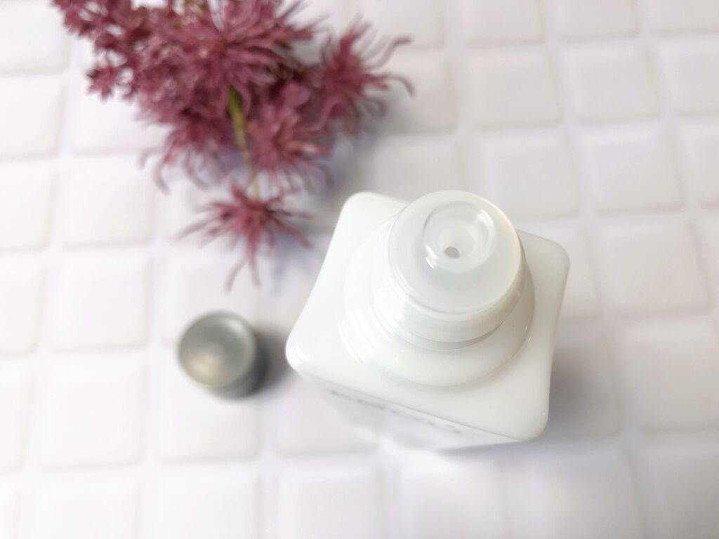 スノーロータス・ボタン・当帰・サンシチニンジン・シャクヤク・バーベナ6種の高山植物から抽出した保湿成分が肌の乾燥を防いでくれます。 ポイントとして、高山スノーロータス(雪蓮)エキスは持続的に保湿してくれる成分。 この美容液、手にしてみると重厚感すごい!デザインが本当に素敵だし、瓶の中にキラキラしているものが入っているのもキレイです。 これは人肌で溶ける雪形の美容成分❗️ほんの少しとろみのあるテクスチャーでスッとなじむ気持ちの良い美容液です😊