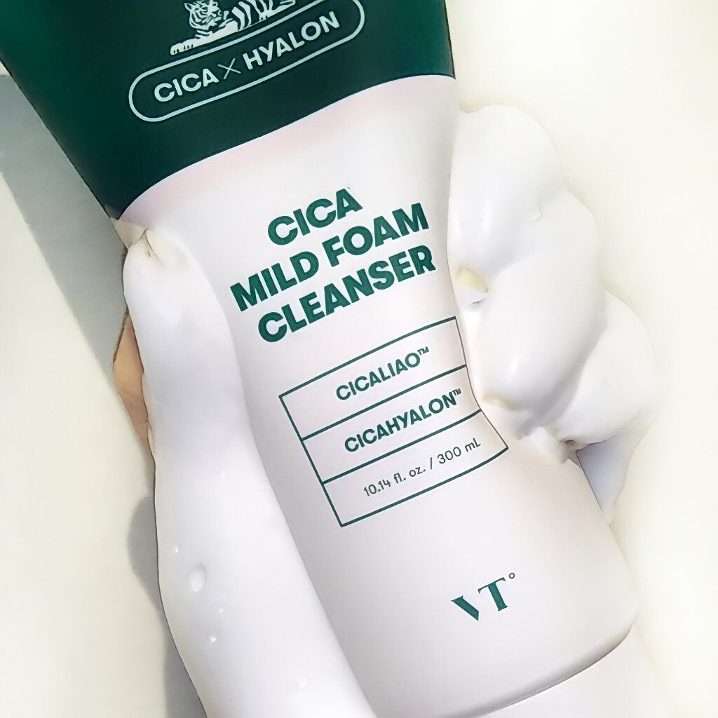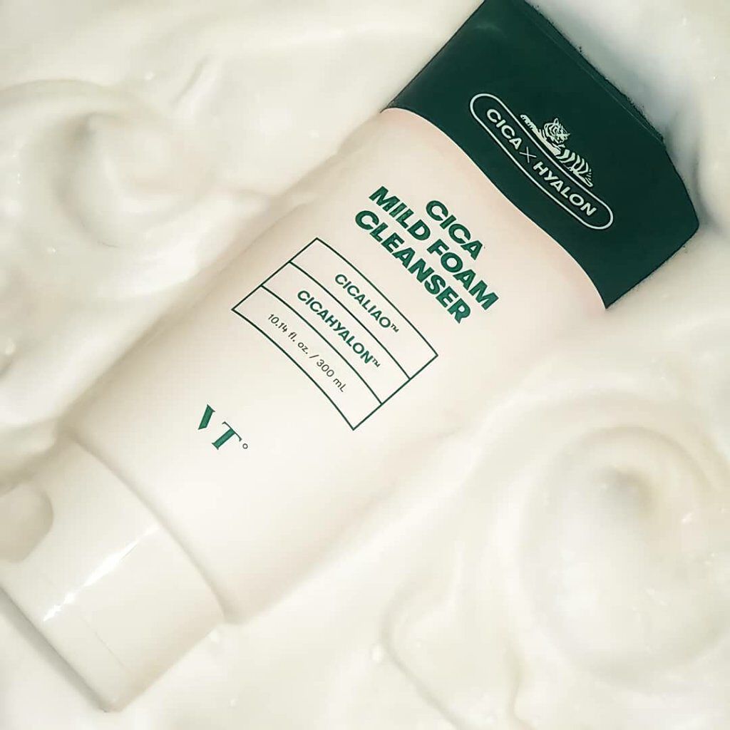 - VT シカフォームクレンザー (VT CICA MILD FOAM CLEANSER) 毛穴に溜まった汚れを吸着してクリアな美肌に導く、大容量!シカ・マイルド・フォームクレンザー。 柔らかいもちもち泡で、汚れや皮脂をしっかり除去! 6種のハーブ成分*を配合で、敏感肌のことを考えた洗顔フォーム。洗顔後のつっぱり感もなくすこやかに保ちます。 VT独自の整肌成分シカリオ™**を配合しており、肌の乾燥を防ぎ、水分バリア機能をサポートします。 水分供給・肌整肌成分と3重ヒアルロン酸で、肌に豊かな水分をたっぷりチャージし、うるおい美肌に導いてくれます◎ もちろん洗浄力も!日焼け止めやベースメイクまでしっかりさっぱり洗いあがるのに、しっとりとした使い心地です。 *ラベンダーエキス、タイマツバナ葉エキス、セイヨウハッカ葉エキス、フリージアエキス、カミツレ葉エキス、ローズマリー葉エキス:(すべて整肌成分) **ツボクサエキス、センテラ4Xコンプレックス(アシアチン酸、マデカッソシド、マデカシン酸、アシアチコシド):(すべて整肌成分)