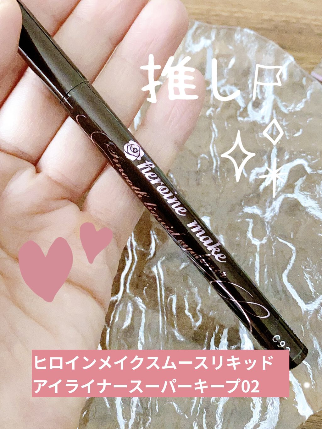 ヒロインメイクスムースリキッドアイライナースーパーキープ02ビターブラウン耐久性の高い処方でウォータープルーフで涙・汗・皮脂に強く美しいラインを長時間キープお湯オフというから買ってみたぁ細筆で描きやすい抜け感があるのでブラウン系、好きまぁまぁ...