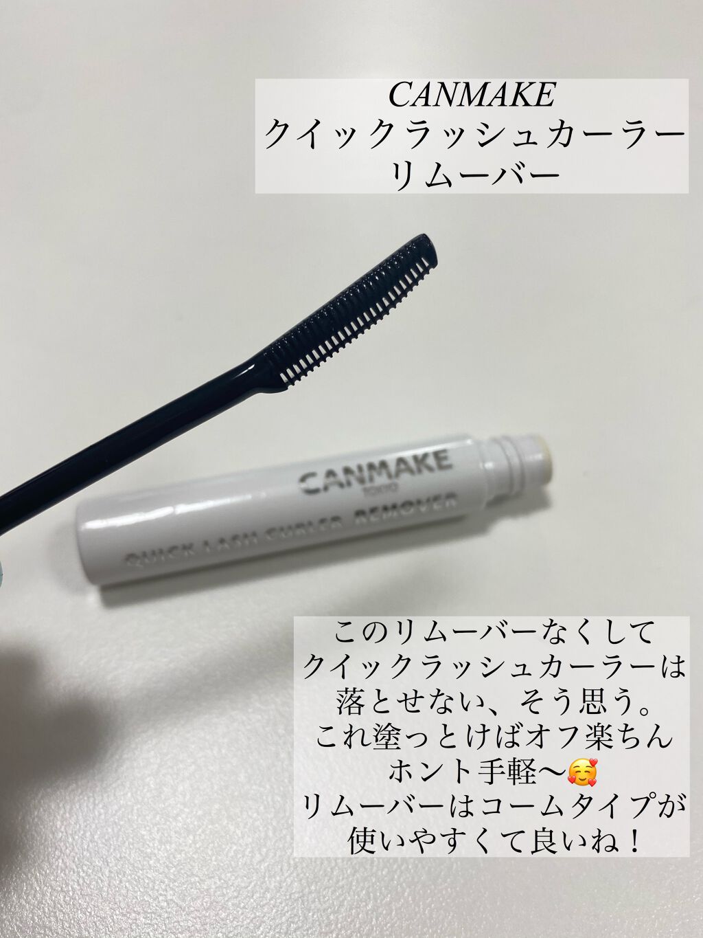 キャンメイクのリムーバーを買ってみました✨ メイクに馴染みやすいサラッとしたオイルで満遍なくまつ毛に塗布するだけで擦らず、するんと落ちてくれる🙆♀️ カールキープの強いキャンメイクのクイックラッシュカーラーが落とせる! クイックラッシュカーラー用ではあるけど他のマスカラもそれなりに落ちます! 550円で買える神コスパなので私はこれあれば十分だし、またリピートしそう