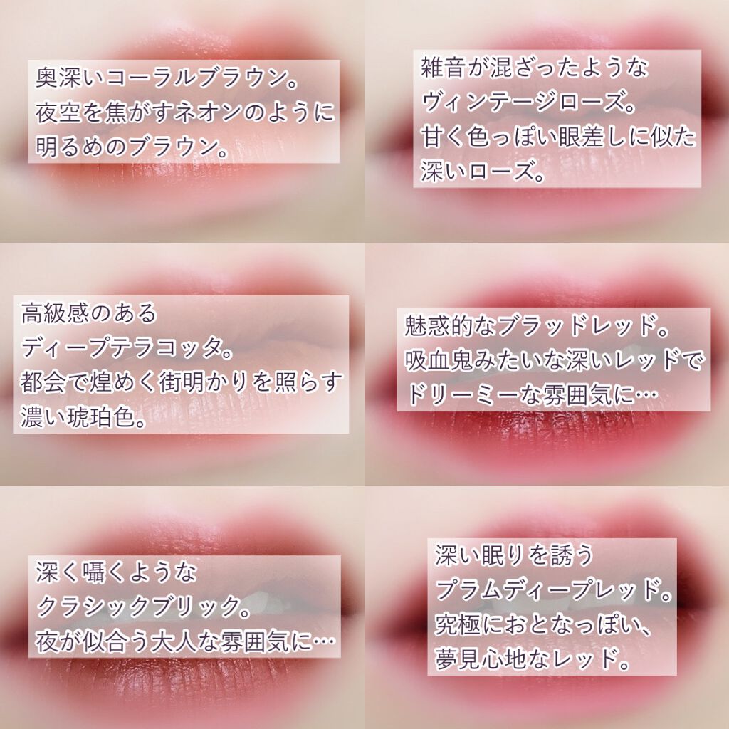 | リップティントランキング第107位 | 重ねれば重ねるほど発色と深みが増すので、 リップひとつでも使い方で色んな表情を見れるのも素敵です | 詳細を見る | |