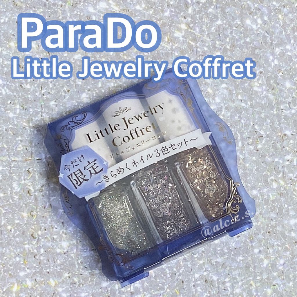 - SNSで人気の商品です! 「リトルジュエリーコフレ」は、パラドゥ史上最高級の輝きで、まばゆいほどのきらめきを演出するネイルカラー。 ワンシーズン使い切りのミニサイズで、ご自宅でセルフネイルを楽しむ方にもお勧めです。 「リトルジュエリーコフレ」のテーマは、「Marie’s Collection」(マリーズコレクション)」。 宝石をこよなく愛し、また宝石にも愛された女性、マリー・アントワネット王妃を魅了した宝石の輝きにインスパイ アされた、色とりどりのきらめきをギュッと詰め込んだ、極上のラメカラーセットです。 キラキラと存在感を放ちながら、美しさが溢れ出るような指先。まばゆく輝く宝石を思わせる3 色は、彩り豊かなラ メをひときわ贅沢に配合した特別仕様です。 光を受けて、うっとりするような輝きがゆらめき、手を動かすたびに、心が躍る。 指先に極上のきらめきが、この夏を華やかに演出します。