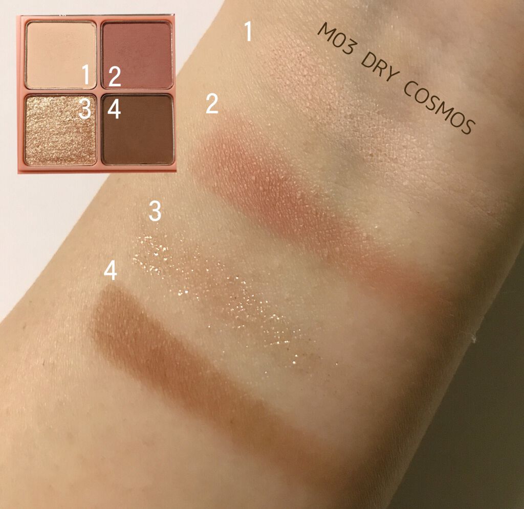 ロムアンドの4色パレット『ベターザンアイズ』の数量限定色を含む手持ち16色の全色スウォッチです。 ✏︎イエベさんにおすすめのパレット ✏︎ブルベさんにおすすめのパレット
