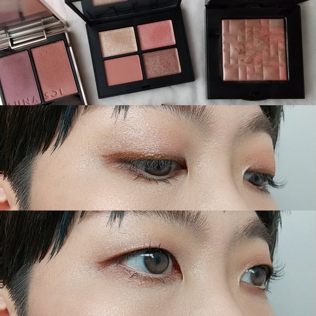 NARSのクワッドアイシャドー、コーラルみがあってすごく可愛いですー😆❤️ 茶色のアイライナー、便利だけどあんまり使ってなかったの同意です😅アイシャドウの色味とあってて素敵👍✨