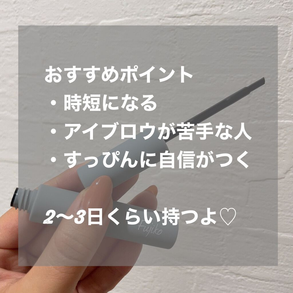 以前もフジコの眉ティントを使ったことはあったのですが、久しぶりに眉ティント買いました〜!リニューアルされて筆先が斜めになってる😳💗前のは眉尻が結構ベタっとついてしまい綿棒などで修正してましたが、眉尻まで細かく塗れるようになってて感動✨お泊まり...