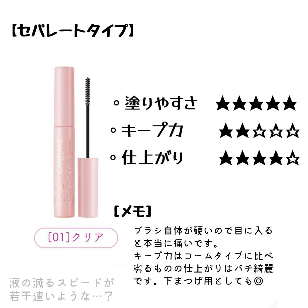 | マスカラランキング第62位 | 白半透明カラーだから塗り残しを防いでくれて 上から塗るマスカラの邪魔をしないよっ! | 詳細を見る | |