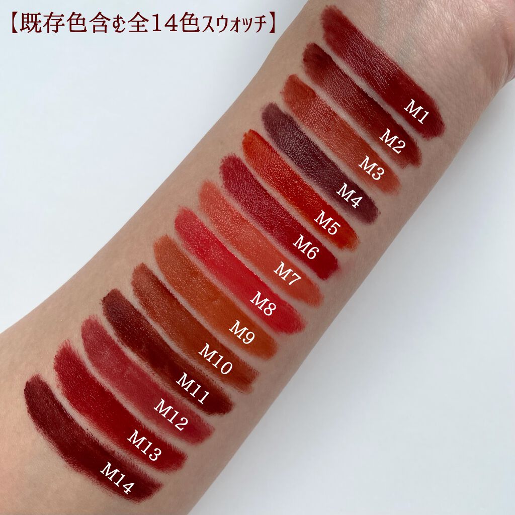 - <M11 ピロウトークブリック> ジメチコン、(ジメチコン/ビニルジメチコン)クロスポリマー、水、グリセリン、セチルPEG/PPG-10/1ジメチコン、トリイソステアリン酸ポリグリセリル-2、ペンチレングリコール、リンゴ酸ジイソステアリル、メチルトリメチコン、マイカ、シリカ、シクロペンタシロキサン、(アクリル酸ブチル/アクリル酸ヒドロキシプロピルジメチコン)コポリマー、イソドデカン、フェノキシエタノール、トリメチルシロキシケイ酸、(アクリル酸グリセリル/アクリル酸)コポリマー、ポリプロピルシルセスキオキサン、カプリリルグリコール、1,2-ヘキサンジオール、プロパンジオール、香料、エチルヘキシルグリセリン、ジメチルシリル化シリカ、水酸化Al、ダイウイキョウ果実エキス、メチコン、ワサビノキ種子油、アルガニアスピノサ核油、ヤシ油、シア脂、ハチミツエキス、BG、酸化チタン、酸化鉄、赤202、赤227、黄5、青1 <M12 ローファイインディゴ> ジメチコン、(ジメチコン/ビニルジメチコン)クロスポリマー、水、グリセリン、トリイソステアリン酸ポリグリセリル-2、セチルPEG/PPG-10/1ジメチコン、ペンチレングリコール、シクロペンタシロキサン、メチルトリメチコン、(アクリル酸ブチル/アクリル酸ヒドロキシプロピルジメチコン)コポリマー、イソドデカン、リンゴ酸ジイソステアリル、フェノキシエタノール、トリメチルシロキシケイ酸、(アクリル酸グリセリル/アクリル酸)コポリマー、マイカ、シリカ、ポリプロピルシルセスキオキサン、カプリリルグリコール、1,2-ヘキサンジオール、水酸化Al、プロパンジオール、香料、エチルヘキシルグリセリン、ジメチルシリル化シリカ、ダイウイキョウ果実エキス、メチコン、ワサビノキ種子油、アルガニアスピノサ核油、ヤシ油、シア脂、ハチミツエキス、BG、酸化チタン、酸化鉄、赤202、赤227、黄5、青1 <M13 ベイパーレッド> ジメチコン、(ジメチコン/ビニルジメチコン)クロスポリマー、水、グリセリン、トリイソステアリン酸ポリグリセリル-2、セチルPEG/PPG-10/1ジメチコン、ペンチレングリコール、メチルトリメチコン、リンゴ酸ジイソステアリル、(アクリル酸ブチル/アクリル酸ヒドロキシプロピルジメチコン)コポリマー、イソドデカン、フェノキシエタノール、トリメチルシロキシケイ酸、(アクリル酸グリセリル/アクリル酸)コポリマー、マイカ、シリカ、ポリプロピルシルセスキオキサン、カプリリルグリコール、シクロペンタシロキサン、1,2-ヘキサンジオール、プロパンジオール、香料、エチルヘキシルグリセリン、ジメチルシリル化シリカ、ダイウイキョウ果実エキス、メチコン、アルガニアスピノサ核油、ヤシ油、シア脂、ワサビノキ種子油、ハチミツエキス、BG、酸化鉄、赤104(1)、赤202、赤227、黄4、黄5、青1 <M14 ランバーマルーン> ジメチコン、(ジメチコン/ビニルジメチコン)クロスポリマー、水、トリイソステアリン酸ポリグリセリル-2、グリセリン、セチルPEG/PPG-10/1ジメチコン、リンゴ酸ジイソステアリル、ペンチレングリコール、シクロペンタシロキサン、メチルトリメチコン、(アクリル酸ブチル/アクリル酸ヒドロキシプロピルジメチコン)コポリマー、イソドデカン、フェノキシエタノール、トリメチルシロキシケイ酸、(アクリル酸グリセリル/アクリル酸)コポリマー、マイカ、シリカ、ポリプロピルシルセスキオキサン、カプリリルグリコール、1,2-ヘキサンジオール、プロパンジオール、香料、エチルヘキシルグリセリン、ジメチルシリル化シリカ、ダイウイキョウ果実エキス、メチコン、アルガニアスピノサ核油、ヤシ油、シア脂、ワサビノキ種子油、ハチミツエキス、BG、酸化鉄、赤202、赤227、黄5、青1 <M15 ウェアリーシロップ> ジメチコン、(ジメチコン/ビニルジメチコン)クロスポリマー、水、グリセリン、セチルPEG/PPG-10/1ジメチコン、シクロペンタシロキサン、トリイソステアリン酸ポリグリセリル-2、ペンチレングリコール、メチルトリメチコン、リンゴ酸ジイソステアリル、(アクリル酸ブチル/アクリル酸ヒドロキシプロピルジメチコン)コポリマー、イソドデカン、フェノキシエタノール、トリメチルシロキシケイ酸、(アクリル酸グリセリル/アクリル酸)コポリマー、マイカ、シリカ、ポリプロピルシルセスキオキサン、カプリリルグリコール、1,2-ヘキサンジオール、プロパンジオール、香料、エチルヘキシルグリセリン、水酸化Al、ジメチルシリル化シリカ、ダイウイキョウ果実エキスメチコン、ヤシ油、シア脂、ワサビノキ種子油、アルガニアスピノサ核油、ハチミツエキス、BG、酸化チタン、酸化鉄、赤202、赤227、黄5、青1 <M16 デイズシナモン> ジメチコン、(ジメチコン/ビニルジメチコン)クロスポリマー、水、グリセリン、セチルPEG/PPG-10/1ジメチコン、トリイソステアリン酸ポリグリセリル-2、シクロペンタシロキサン、ペンチレングリコール、メチルトリメチコン、リンゴ酸ジイソステアリル、マイカ、シリカ、(アクリル酸ブ