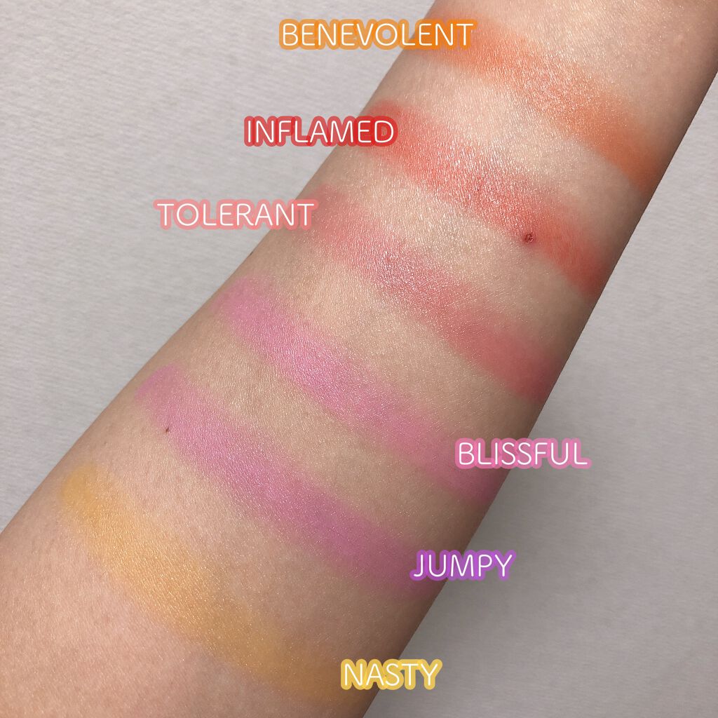 このアイシャドウパレット全体を通して言えることは、陰影の付けやすさを重要視して作られているのでとにかく陰影がつくりやすい! マットシャドウは高発色、高密着でとにかく粉質が良い。 ラメは上品なシマーからド派手な六角ホログラムまで、色々なテクスチャーが集まっているのでとにかく楽しい! ホログラムはブラシだとほぼつかないので、指でとってぬることをおすすめします。 テクスチャーはどれもワセリンを含んだかのようにしっとりとしているので、ラメ飛びせずまぶたにしっかりと密着!! 温かみのあるコーラルカラーが集まっており、イエベ春の私大歓喜😂 デイリーメイクからギラギラのパーティーメイクまで多彩に楽しめるブラウンパレット。 絶妙なローズピンクカラーが集まったお上品仕上がりなアイシャドウパレット。 彩度0なグレイッシュカラーが集まったマットシャドウパレット。 陰影が簡単に作れるまろやかなヌードブラウンが集まったアイシャドウパレット, 彩度低めの優しいミュートピンクカラーが集まったパレット💜