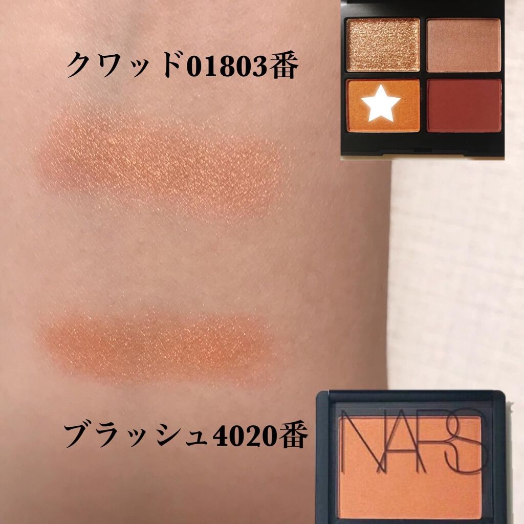 NARSクワッドアイシャドー03140LAGUNASUNSETこちらは2023年発売の商品です。限定品の為、店頭では見られないので備忘録として投稿します🥲左上の色が一番ギラギラ。まぶたにのせるとベージュぽく発色し派手な印象に。他の色も強めの発...