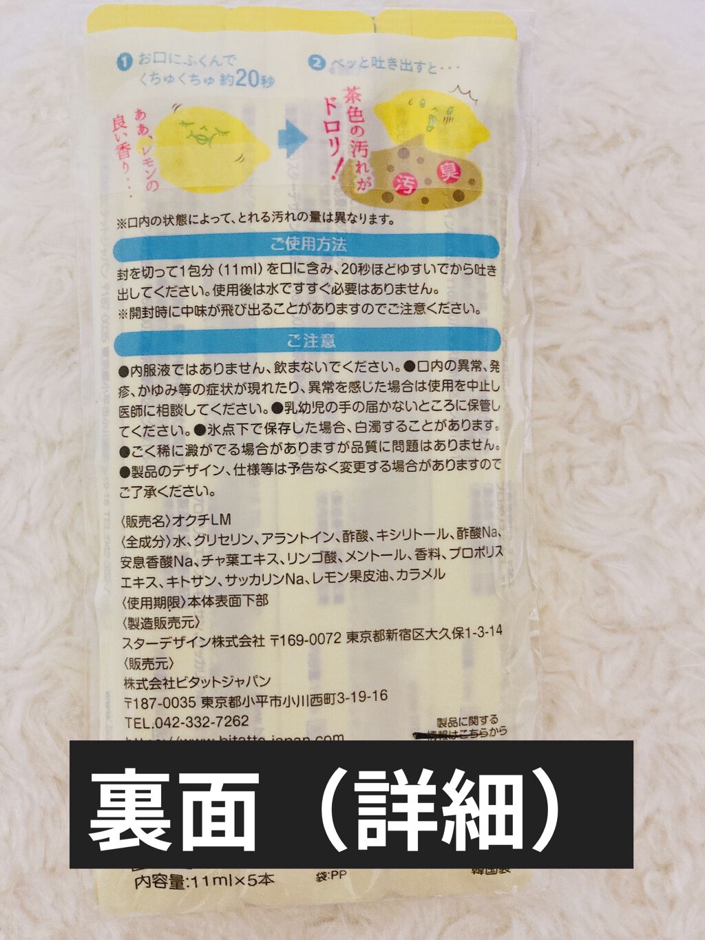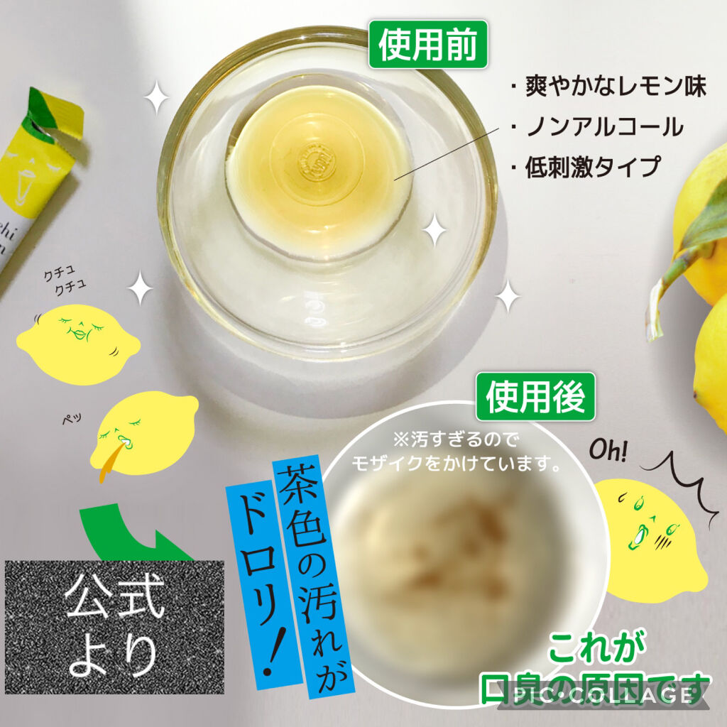 - ●爽やかなレモンフレーバー ●口をゆすいだ後に自分の口の中の汚れが見えて驚き ●20秒ゆすいで速攻リフレッシュ ●携帯に便利なスティックタイプ
