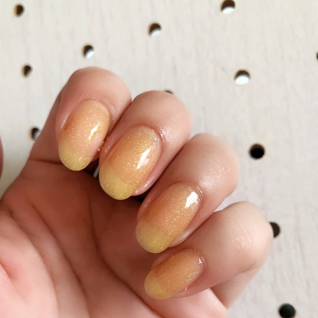 キャンドゥの新作がとってもかわいくて❤️ シャーベットカラーにレインボーラメがざっくり入ったジェルとなっています✨透け感とキラキラ感があるのでムラになりにくく、初心者さんにもおすすめです😊 今回は一度塗りしてみました!透け感があってほんのりと...