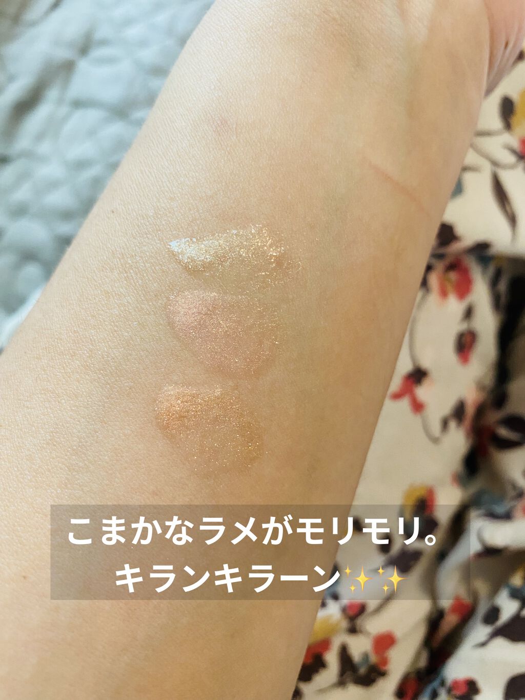 銅系のラメが珍しくて落ち着いていて素敵だと思ったので購入しました! 上品なコッパーゴールドで華やかさがあります。 ほんのりバニラっぽい香りにスースー清涼感があるのも出先の塗り直しに良きです。