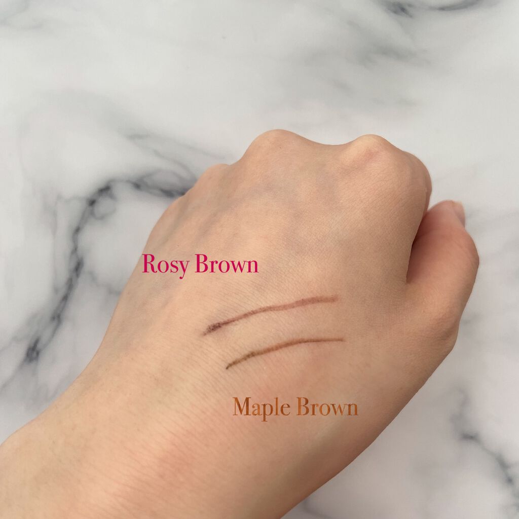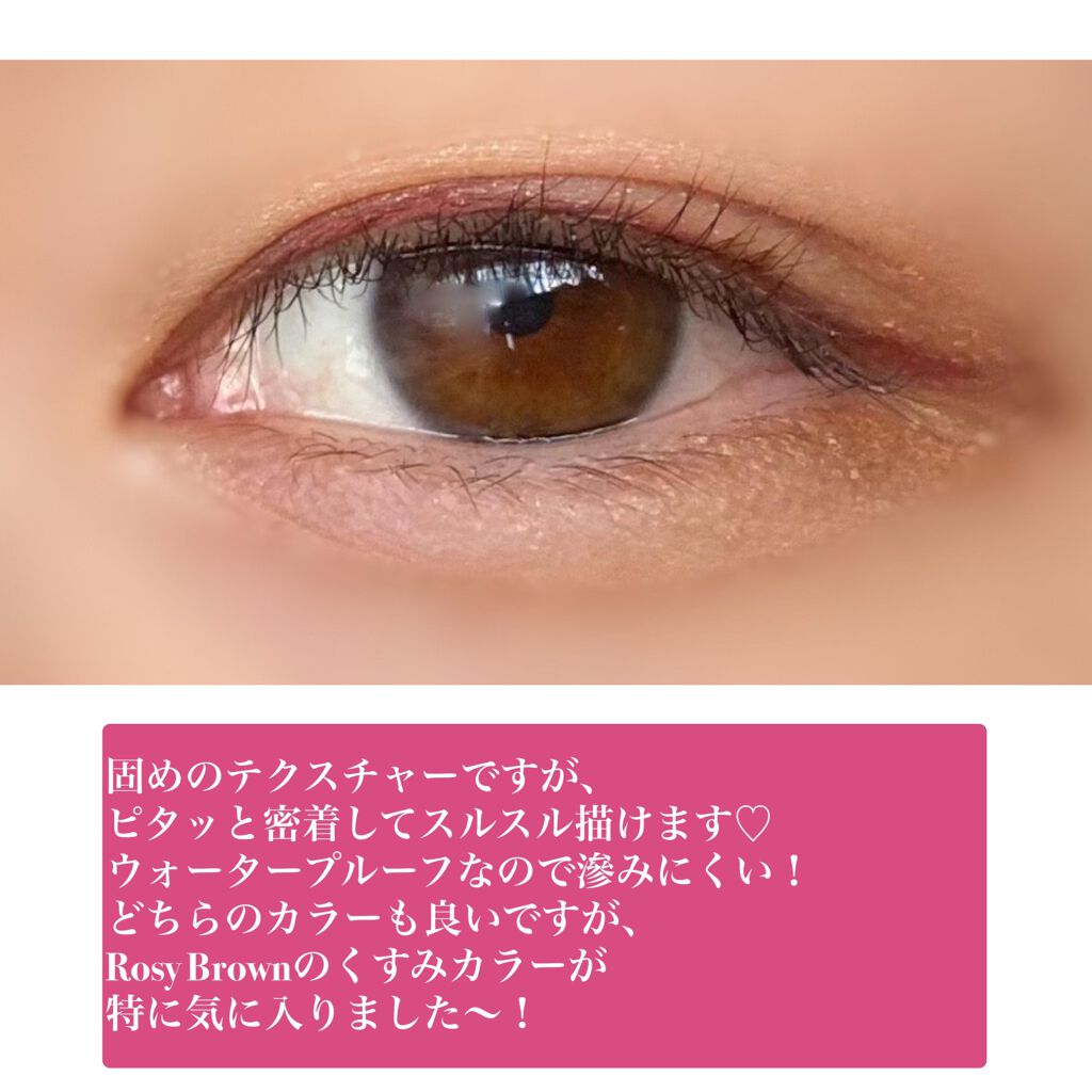 楕円形の芯で、かたすぎず柔らかすぎず、なめらかに描くことができます。 繰り戻しできるタイプなのもうれしい🙆 ウォータープルーフ&スマッジプルーフで非常に持ちが良く、 多少のことでは落ちません🙆 赤みのあるやわらかめのブラウンカラーもお気に入りです!