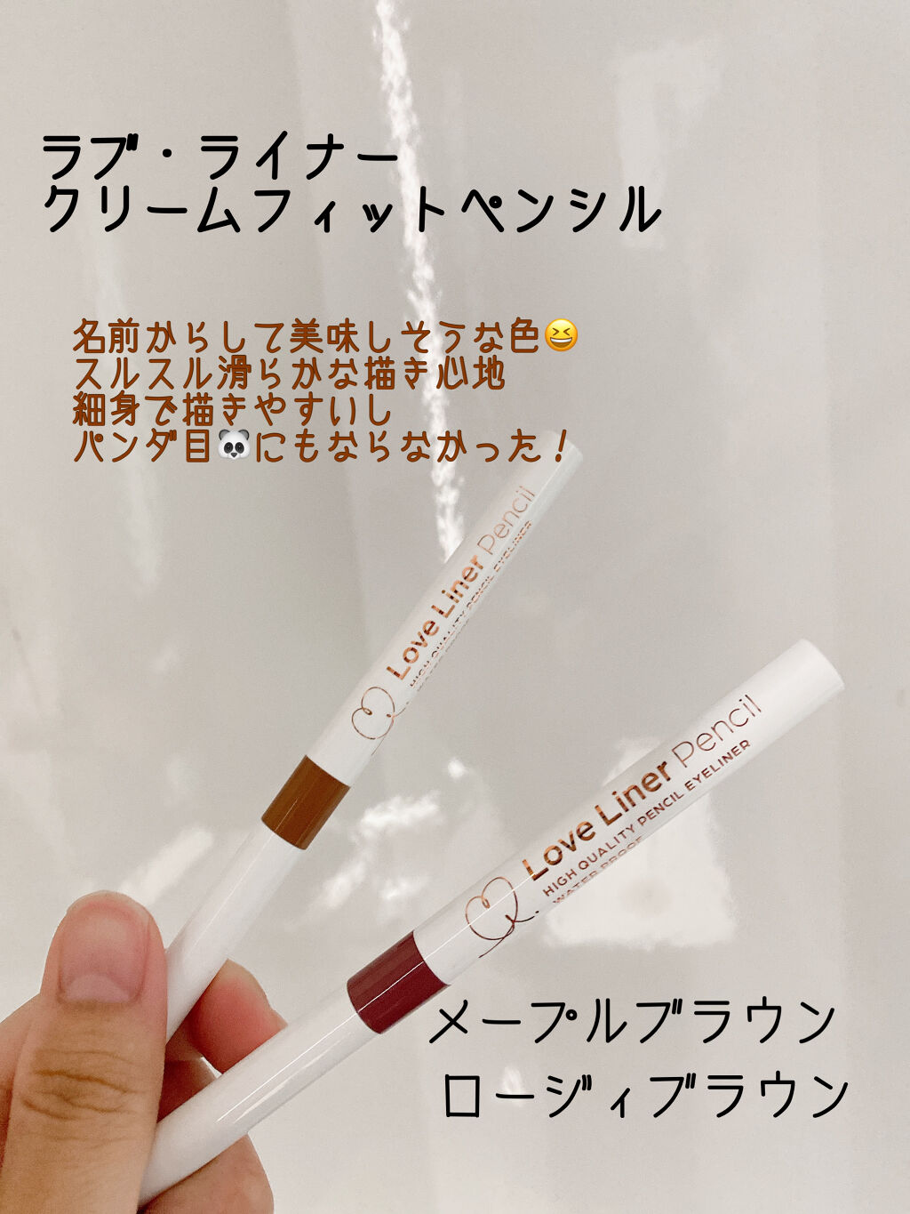 ラブ・ライナー史上最細!1.1 mm🤎 🔍 Wプルーフ設計 ウォータープルーフ スマッジプルーフのこと 発色が良くてペンシルでもくっきりとしたラインが描けて良かった💖 普段は目頭切開ライン描かないけど Medium Brownで描いてみた! ちょっと大人っぽくなってよかった! ペンシルで描くほうがアイシャドウと馴染む感じもしたよ!