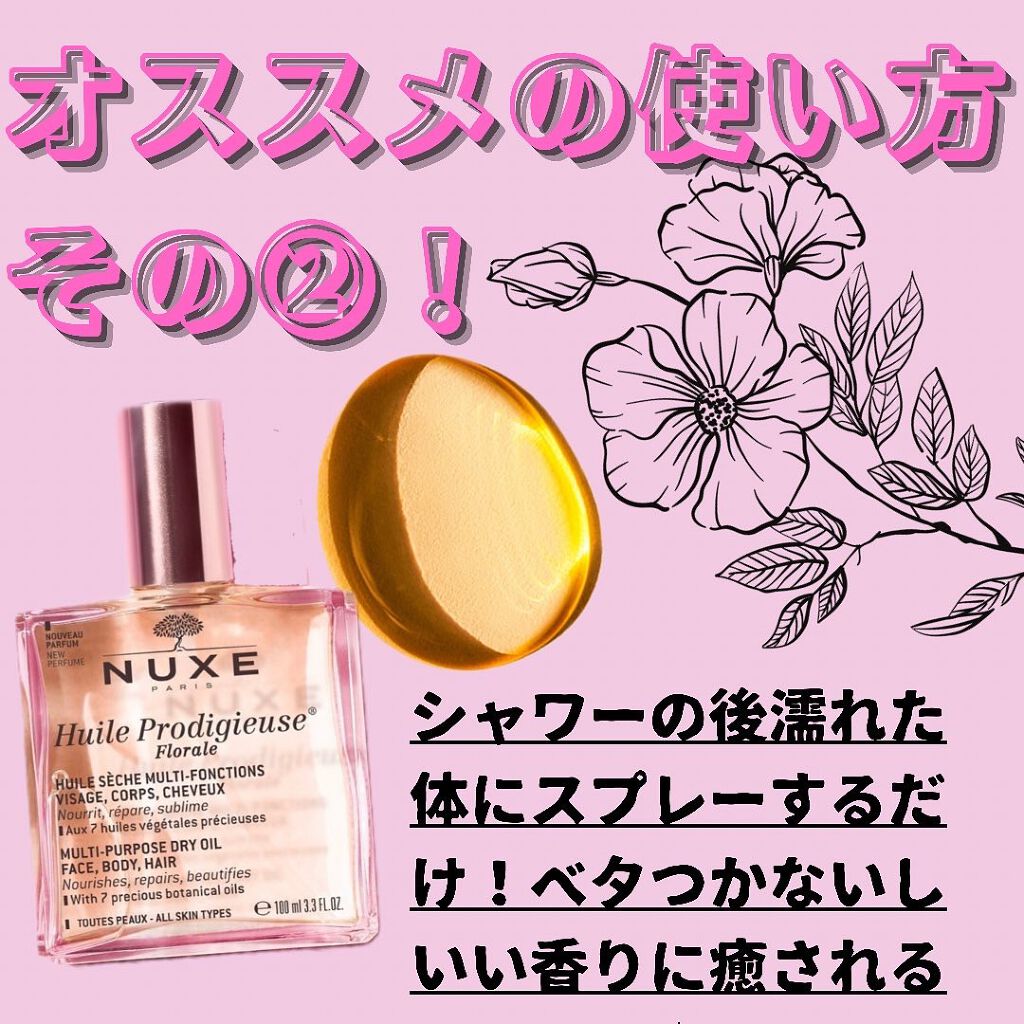 NUXEのプロディジューオイルフランスのブランドだけど日本で買うより断然安いし、前使ってみて良かったからリピ✌️たまたま立ち寄った薬局がセールしてたから思わず購入!!自分はヘアオイルとして使ってる!体や顔にも使える万能オイル。スプレータイプに...