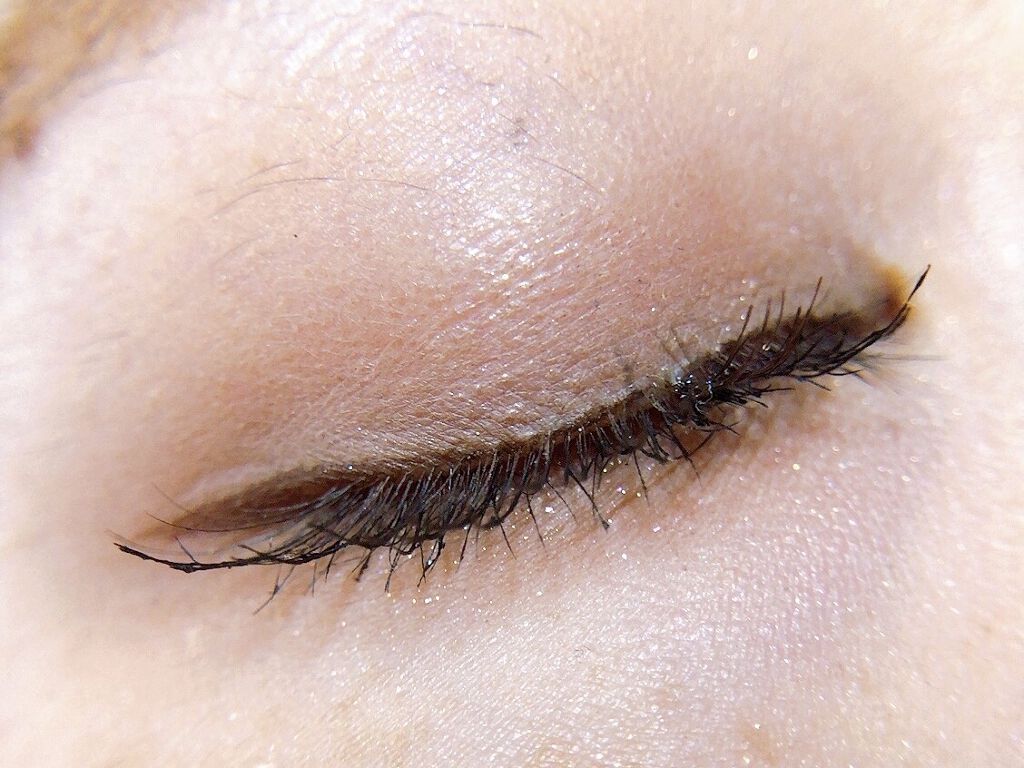 やっぱりめっちゃくすみました😇← でもツヤ感やラメ具合や粉質はさすが👏 仕上がりはほんとめちゃくちゃよし✨ アイライナーも、シュッと引いたらちゃんと細い線が描けたしいい感じ☺️