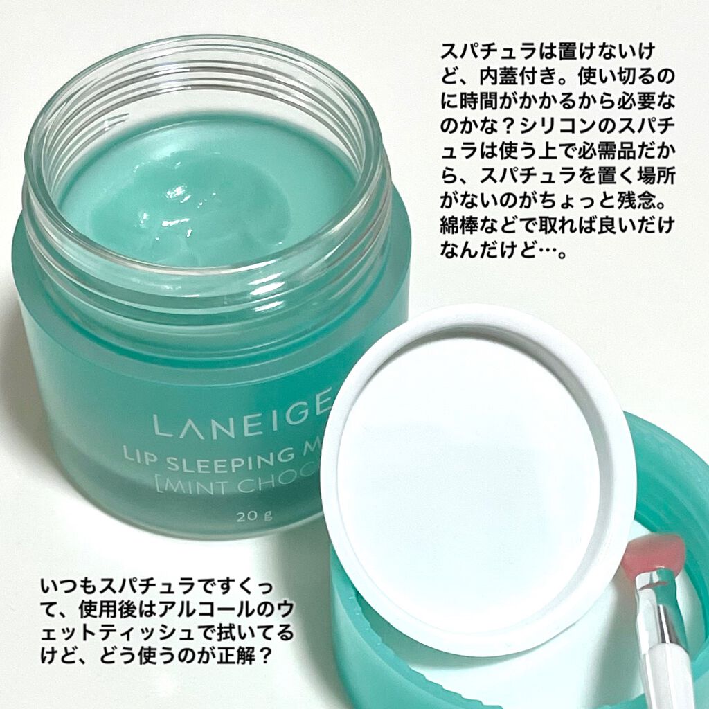 - 寝ている間にケアしてふっくらぷるぷるにうるおった唇へ。 2015年の初代発売以降、世界で2秒に1個売れている*¹LANEIGE大ヒットシリーズ *¹ 2024年グローバル販売実績 1.角質にアプローチするBerryFruitComplex (ベリーフルーツコンプレックス)*²が、 寝ている間に気になる乾燥や角質にうるおいを与え、つやのあるふっくらとうるおった唇に仕上げます。 *²ザクロ果実エキス、ブドウ果実エキス、ラズベリー果実エキス 2.ココナッツオイル(ヤシ油)を配合で、うるおいをあたえ睡眠中の乾燥を防ぎます。 3.今夜はどんな気分?5つのフレーバーから選べるワクワク感。 ■テクスチャー:やさしく馴染むなめらかなバームタイプ ■アレルギーテスト済み*³ *³全ての方にアレルギーが起こらないということではありません。 ■使用方法 寝る前に唇にたっぷり塗り、そのままお休みください。 翌朝、軽くティッシュオフします。付属のスパチュラで塗ることで、より唇の角質に馴染みやすくなります。 日中のリップトリートメントにも使用できます。