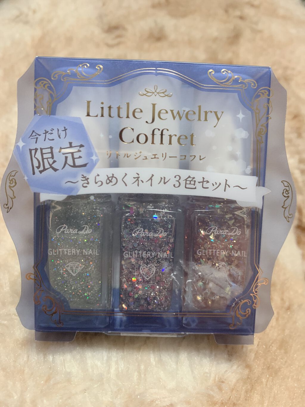 - SNSで人気の商品です! 「リトルジュエリーコフレ」は、パラドゥ史上最高級の輝きで、まばゆいほどのきらめきを演出するネイルカラー。 ワンシーズン使い切りのミニサイズで、ご自宅でセルフネイルを楽しむ方にもお勧めです。 「リトルジュエリーコフレ」のテーマは、「Marie’s Collection」(マリーズコレクション)」。 宝石をこよなく愛し、また宝石にも愛された女性、マリー・アントワネット王妃を魅了した宝石の輝きにインスパイ アされた、色とりどりのきらめきをギュッと詰め込んだ、極上のラメカラーセットです。 キラキラと存在感を放ちながら、美しさが溢れ出るような指先。まばゆく輝く宝石を思わせる3 色は、彩り豊かなラ メをひときわ贅沢に配合した特別仕様です。 光を受けて、うっとりするような輝きがゆらめき、手を動かすたびに、心が躍る。 指先に極上のきらめきが、この夏を華やかに演出します。