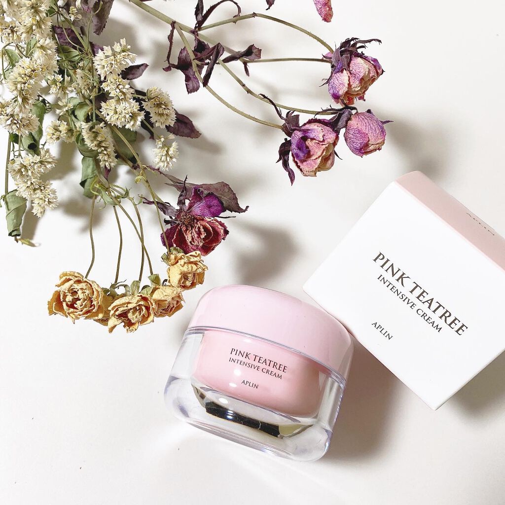 APLINで人気のピンクティーツリーシリーズの化粧水。ティーツリー成分やCICA成分を配合し、肌を落ち着かせ健やかに整える働きが期待できます。 さらりとしたテクスチャーで、ベタつき・ヌルつき感はありません。軽やかで、なじませると肌にぐんぐん吸い込まれていく感じ✨ 大人可愛い見た目で使っていて気分も上がるし、お花をイメージするようないい香りも◎!