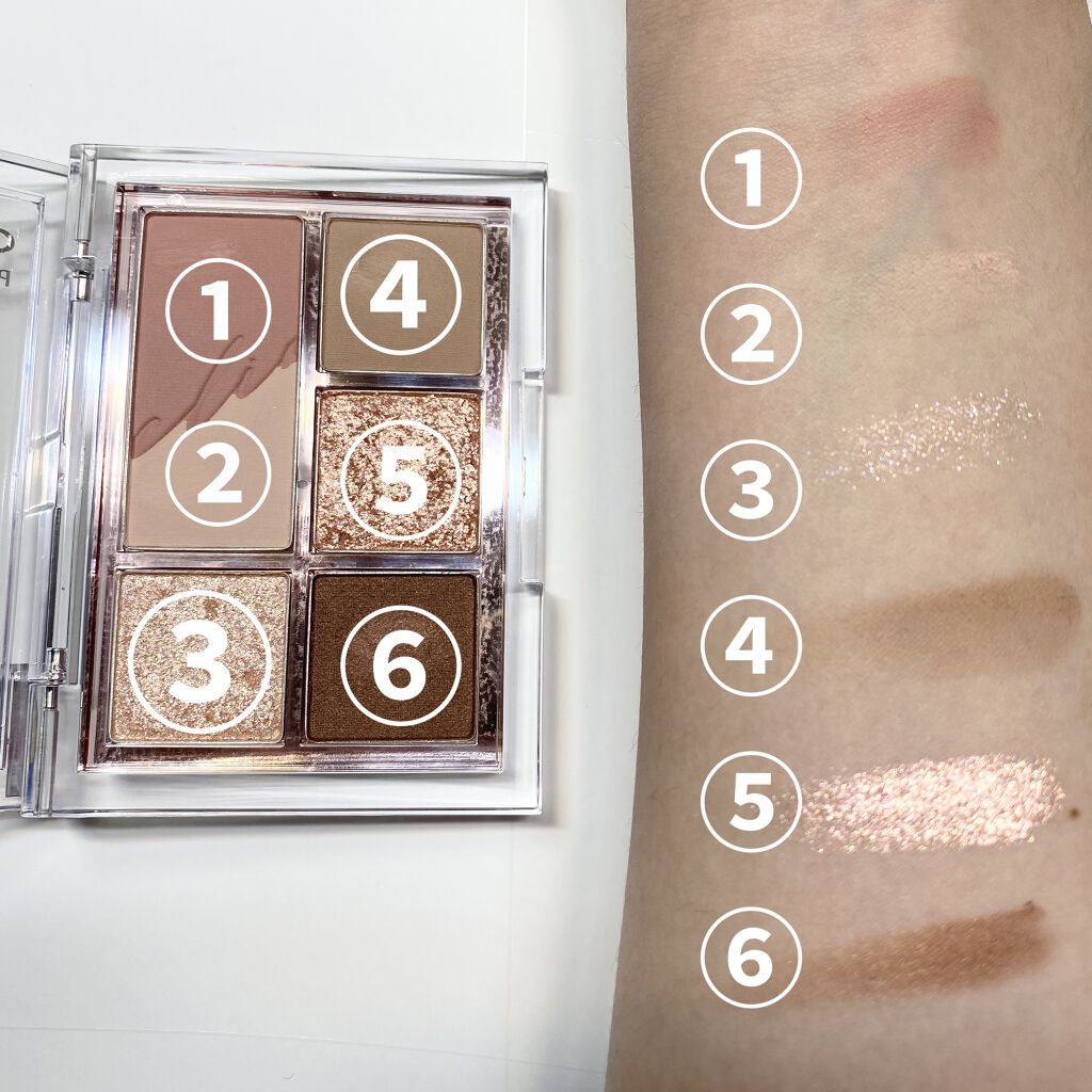 - 同系色陰影カラーと上品でクリアなグリッターの組み合わせの必要なカラーだけ詰め込んだミニアイパレット!