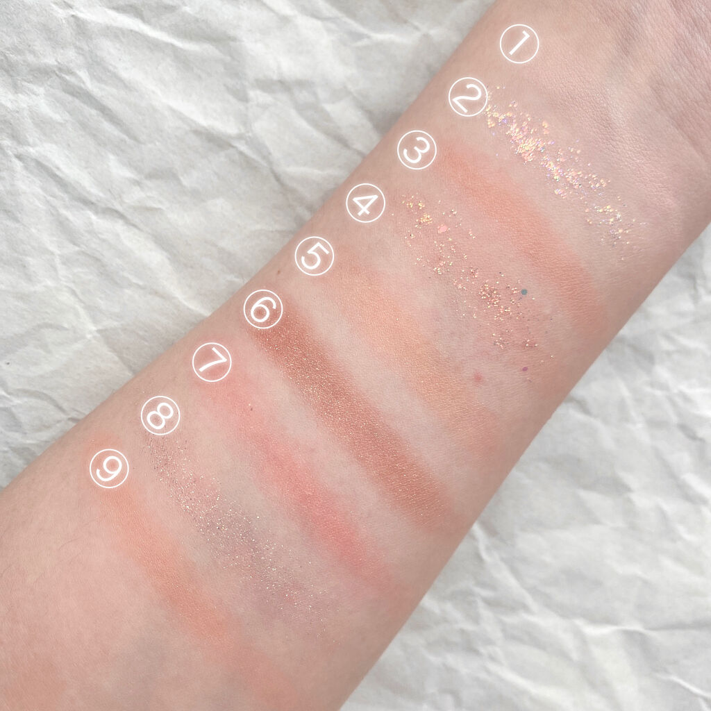 - 雲のような柔らかい質感で密着力が抜群です。 もちふわなテクスチャーで高発色なアイシャドウ。 捨て色なしの9色パレットです。 順番に重ねるだけで 輝きの微細パールで、ギラつかない、大人のツヤ感になります。 しっとりとしたパウダーがしっかりと色づいて粉飛びしにくくピタッと密着します。 *商品サイズ (幅×奥行×高さ) :8.5*8.5*1.5cm