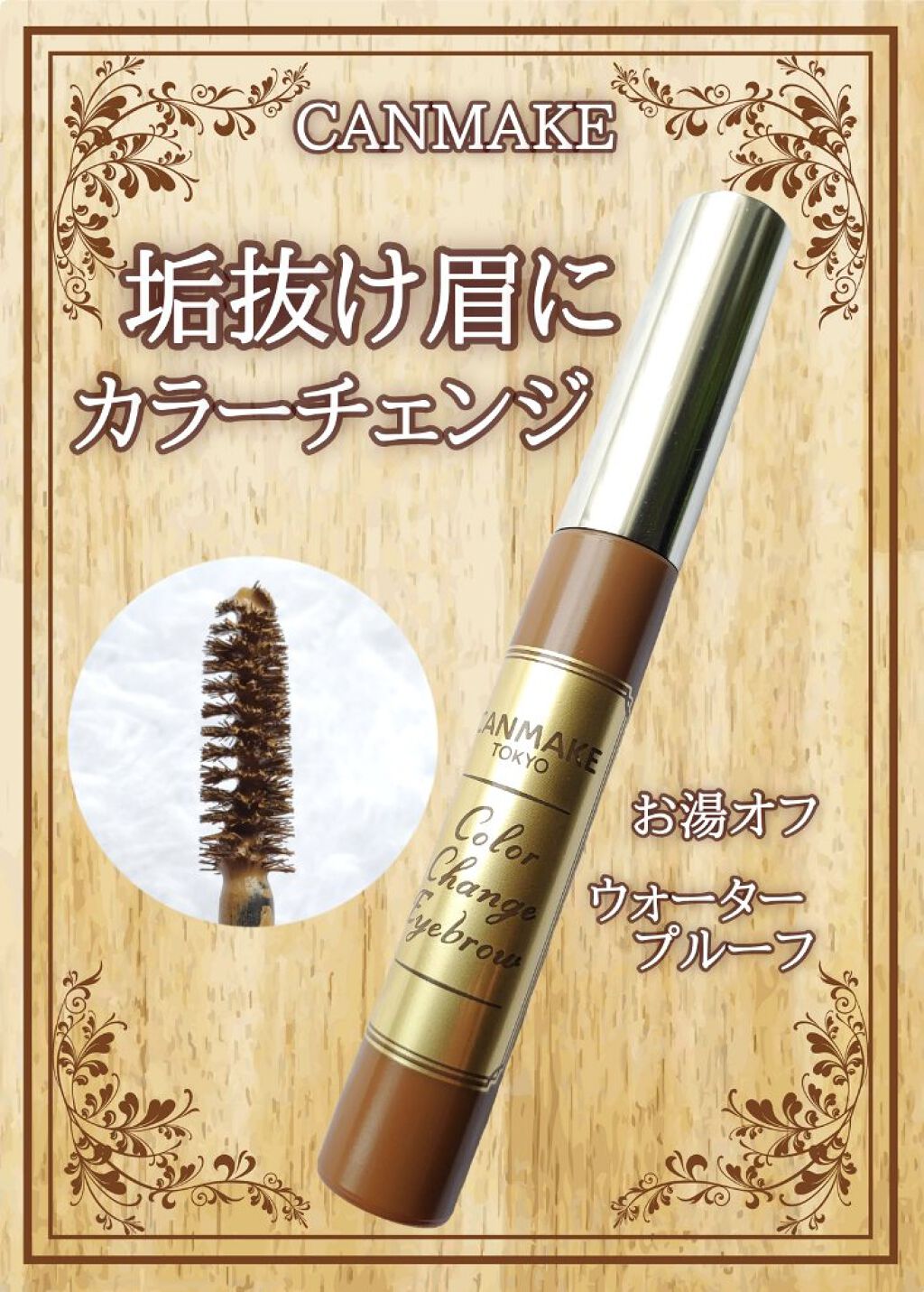 - ひと塗りでしっかり眉色チェンジ!!高発色眉マスカラ 髪色に合わせて、眉だけ浮いた感じをなくして一気にあか抜け顔に! 眉色を明るくすることで透明感のある肌にみせ、やさしい印象に仕上がります。 地肌につきにくい濃密ブラシが1本1本しっかりコーティングし、 毛流れを整えてキレイな眉をキープ!